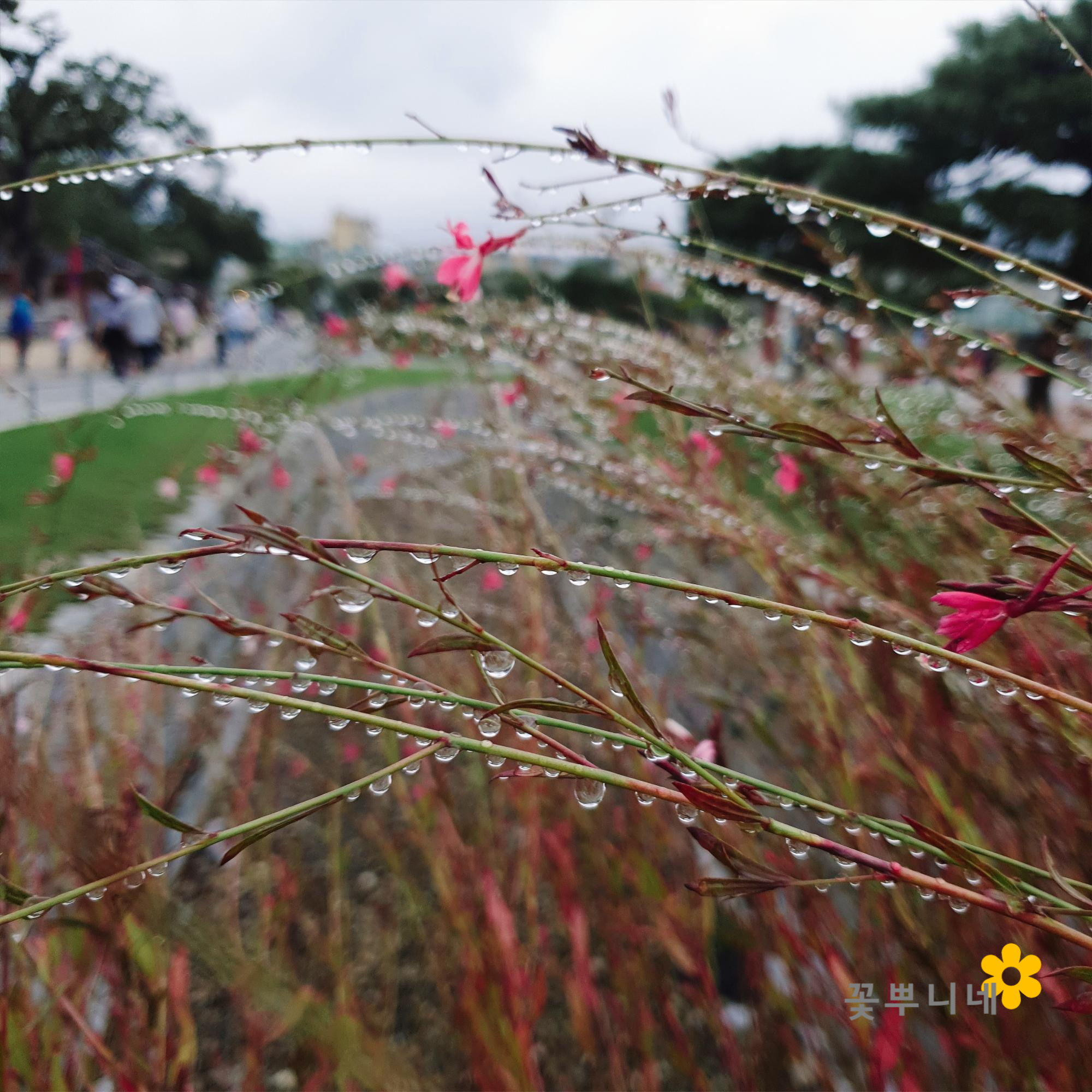 빗방울은 머금은 연분홍색의 바늘꽃은 떠나간 이를 그리워하는 청순한 느낌이 들기도 해요.