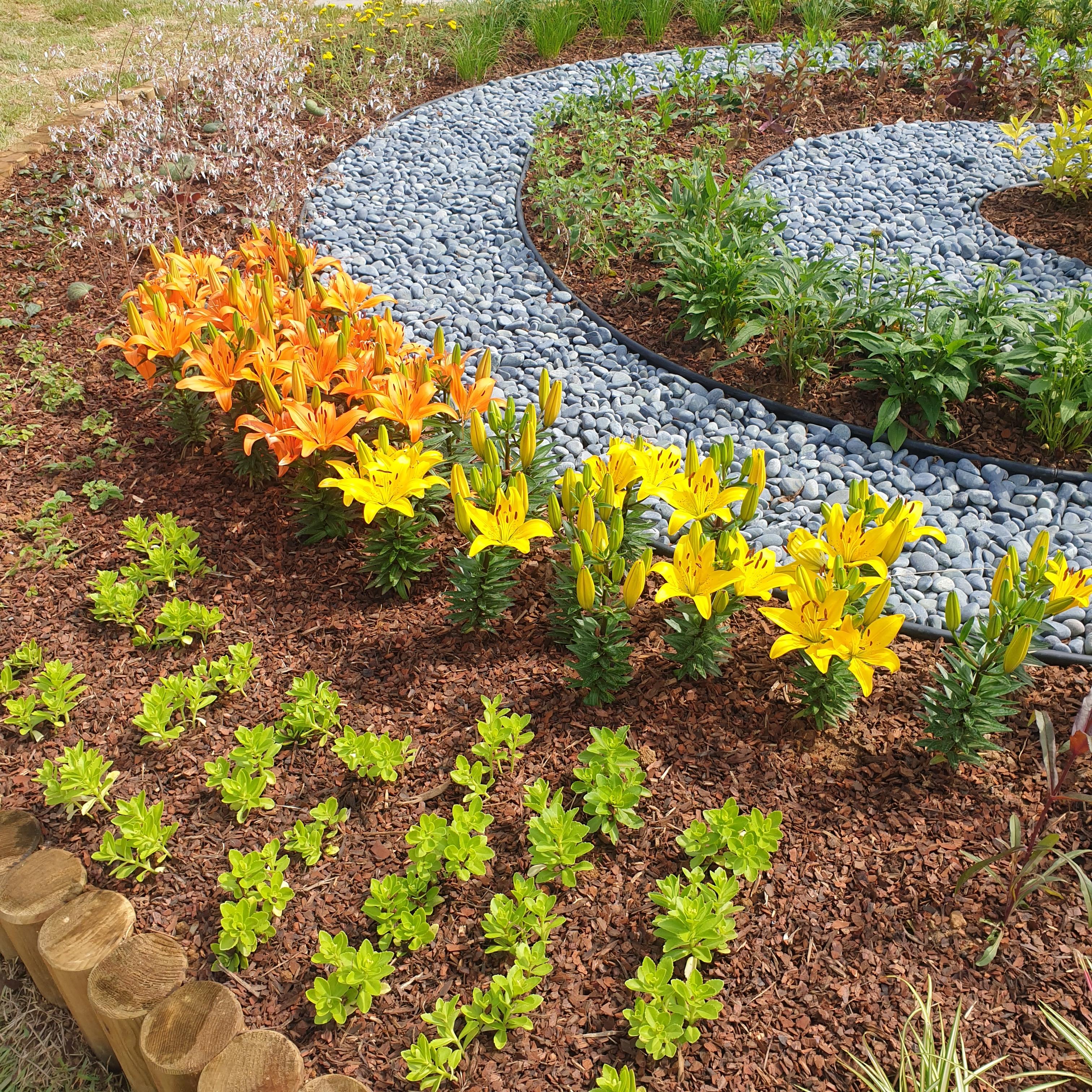 안내 현수막에서 본 그림처럼 원형으로 만들어진 꽃밭에는 아주 다양한 꽃들이 많이 심어져 있었어요.