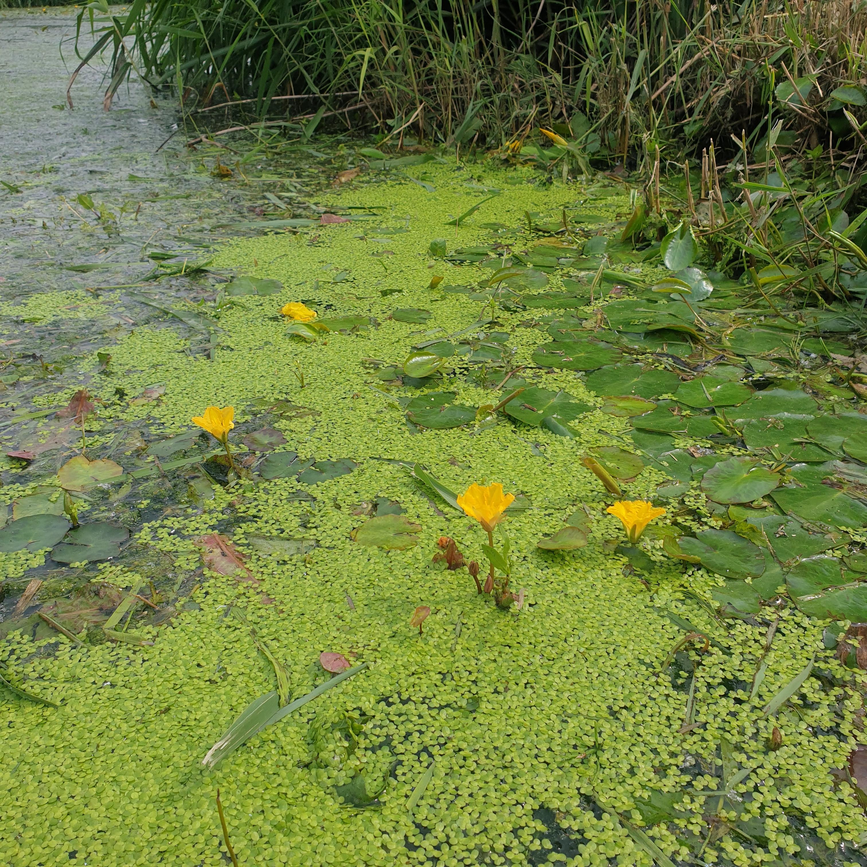 물 위를 가득 채우고 있는 연둣빛의 물풀은 개구리밥인 거 같은데 진한 연잎과 노란 연꽃이 어쩌면 저렇게 잘 어울리는지 감탄이 나오네요.