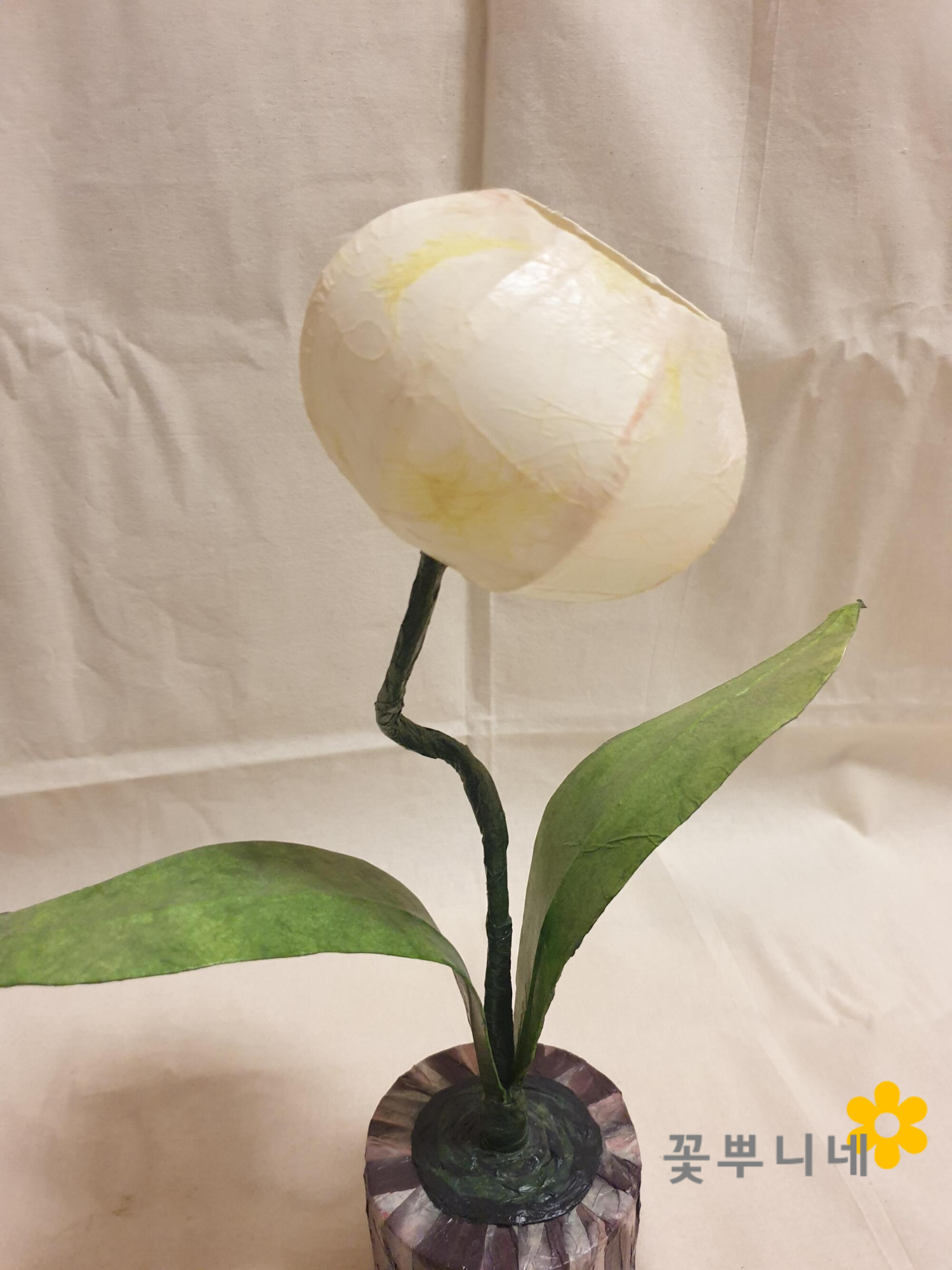 잎사귀는 배접지를 사용해서 도톰하게 만들고 마감처리를 해서 건강한 화초잎 같지요.