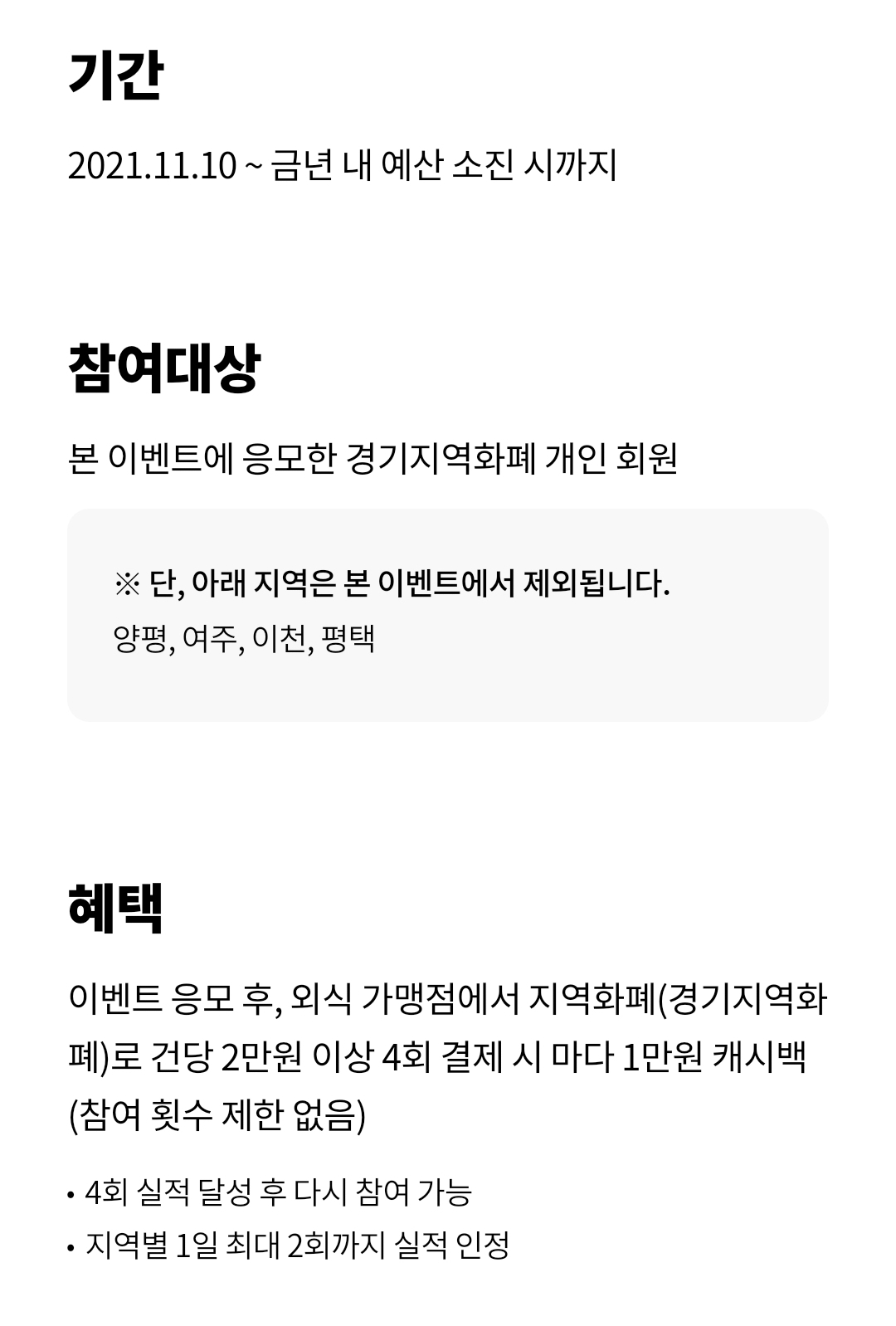 유의사항 : 동일 지역화폐에 한하여 1일 2회까지 실적 인정, 동일업장은 1일 1회로 제한