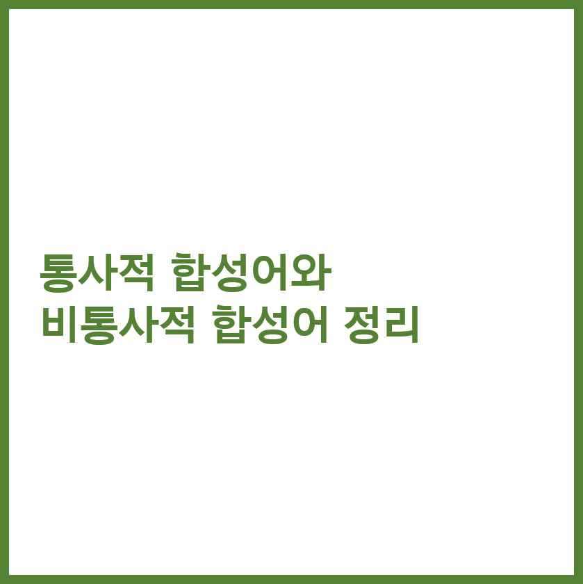 먼저 합성어가 무엇인지 정리하고, 통사적 합성어와 비통사적 합성어의 개념과 그 범주에 속하는 단어가 무엇인지 정리하겠습니다.
