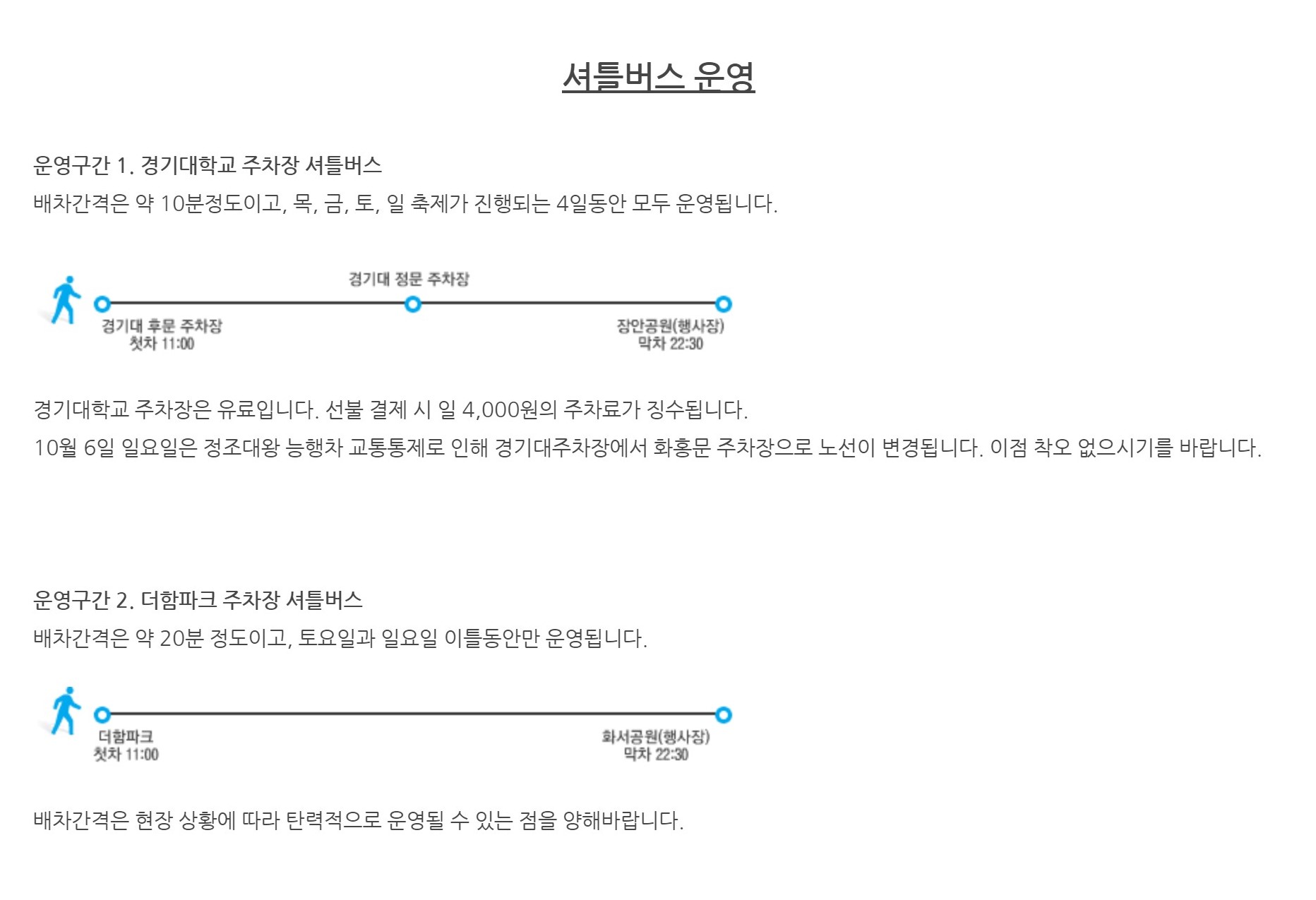 그리고 문화제 행사장과는 거리가 조금 멀지만 셔틀버스를 운행하고 있는 주차장도 있어요.