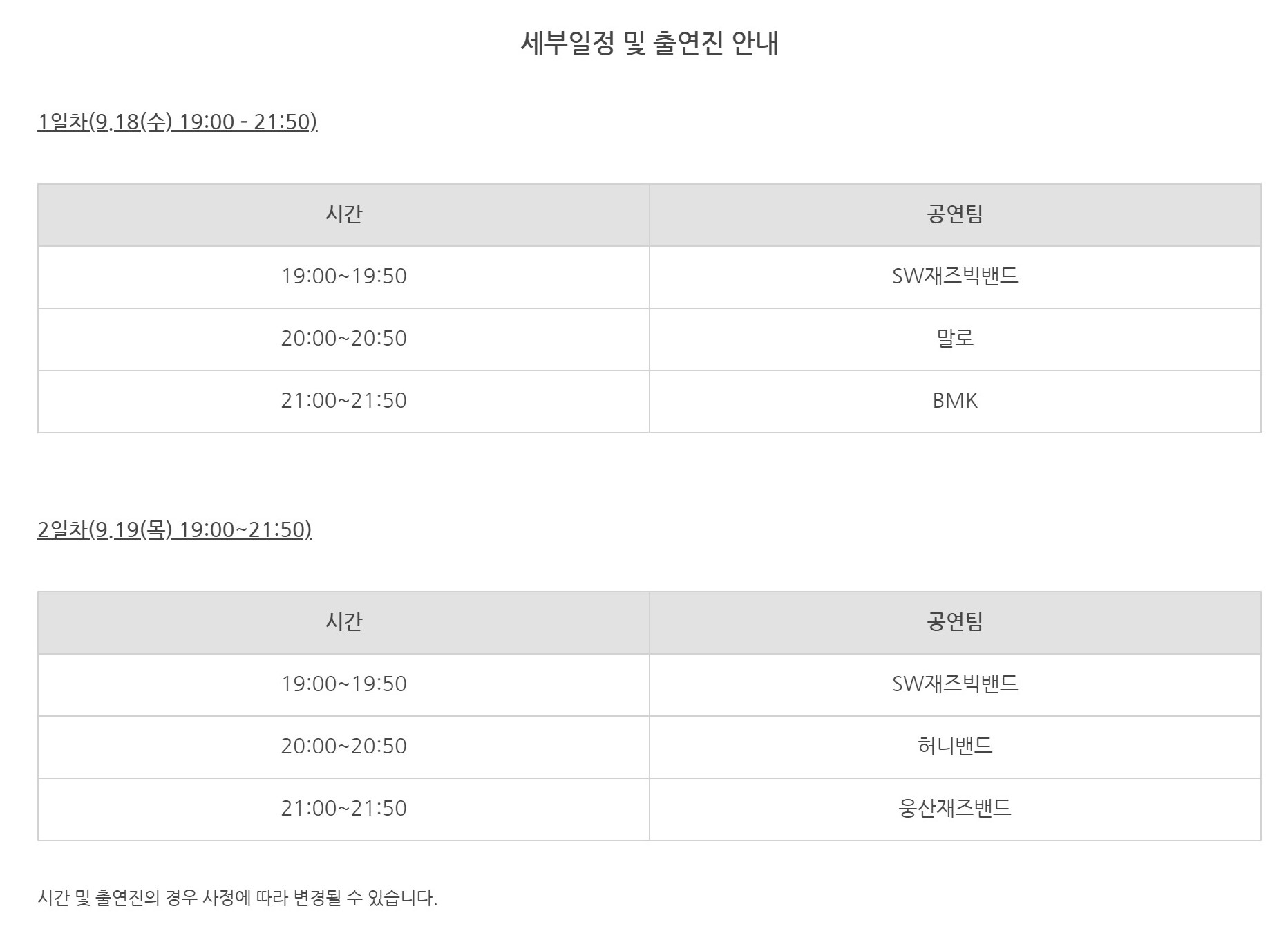 - 재즈페스티벌 변경된 일정 -