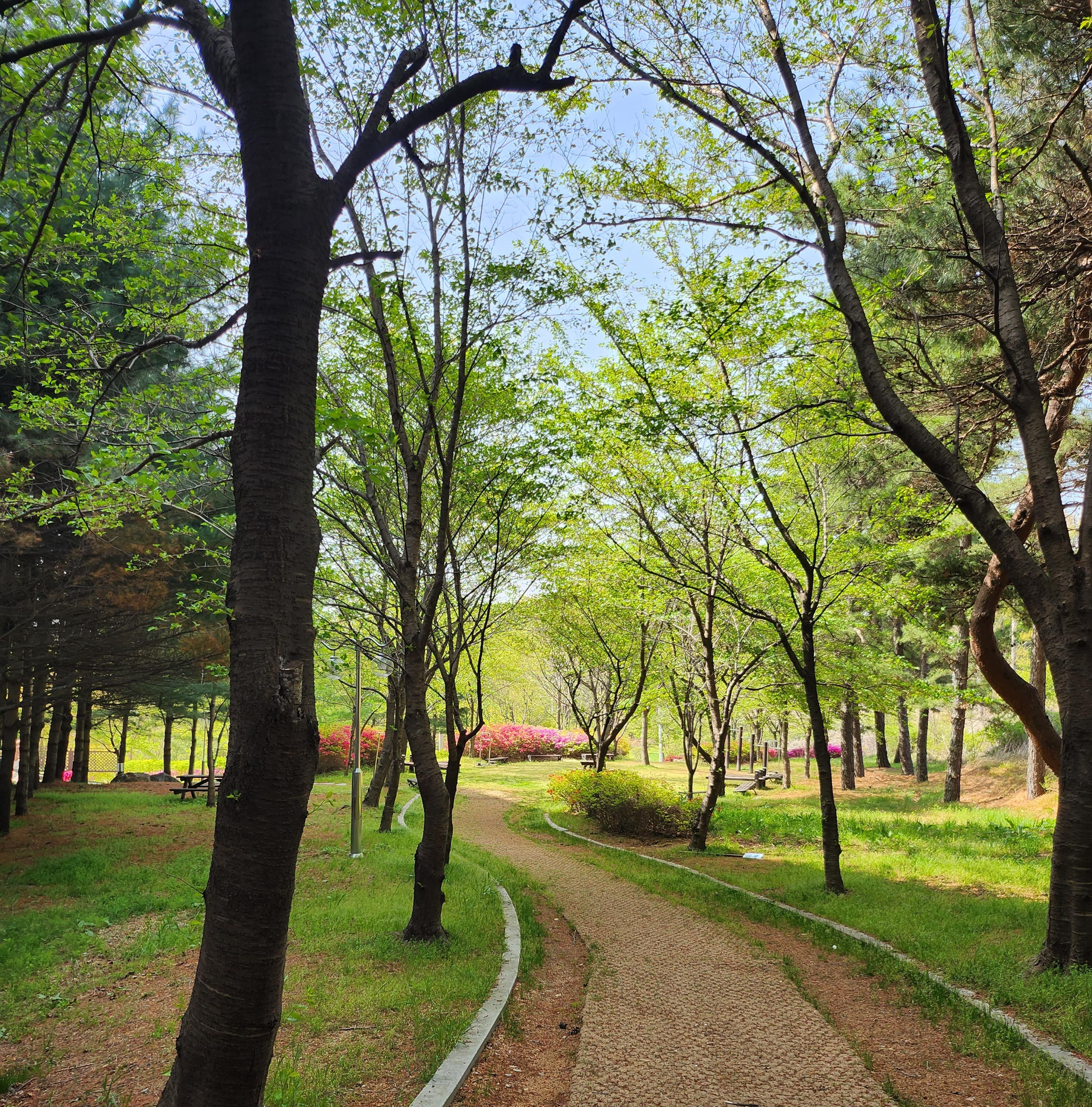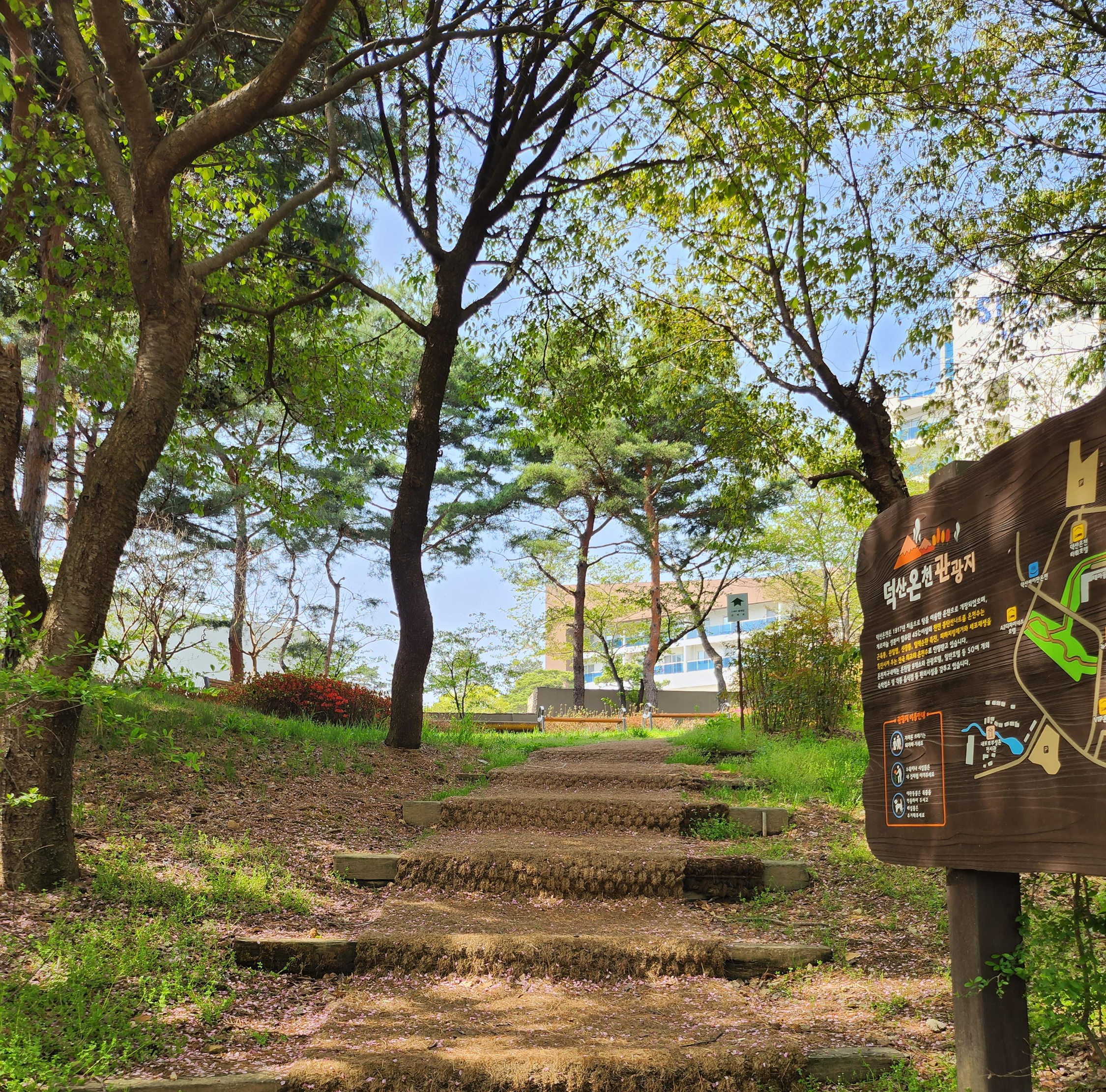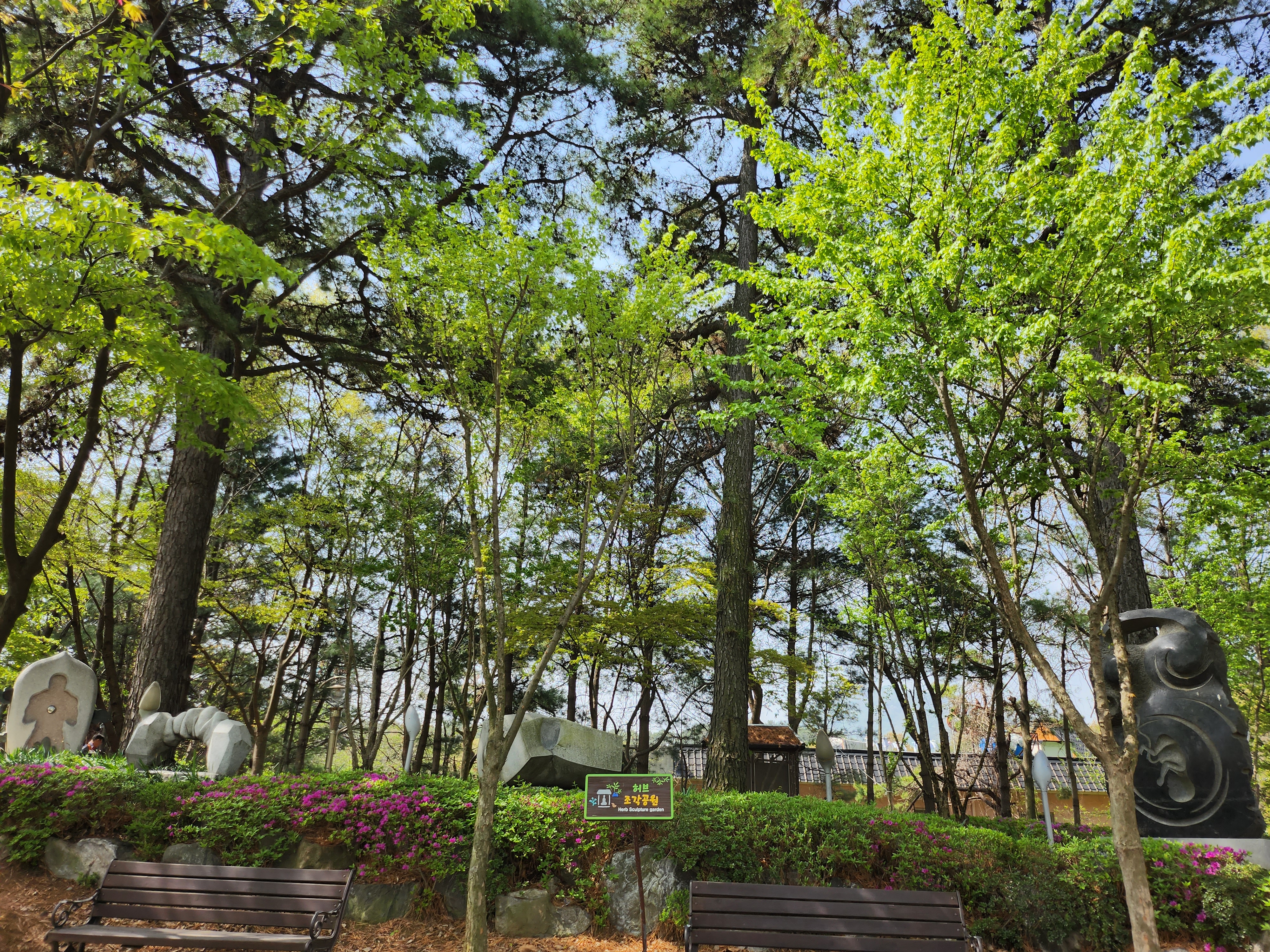 덕산온천 입구에 소풍 같은 숲이 펼쳐져 있네요.