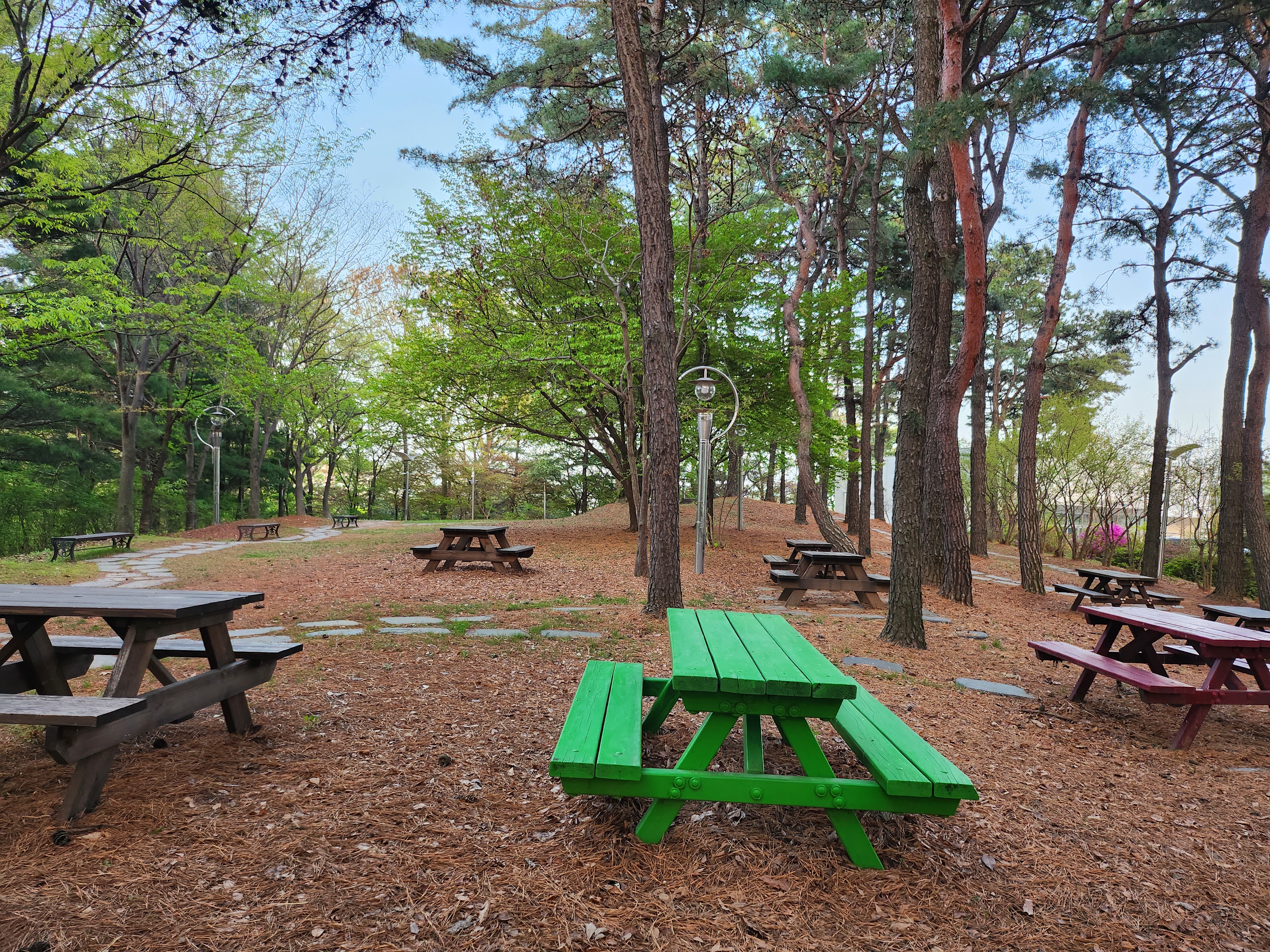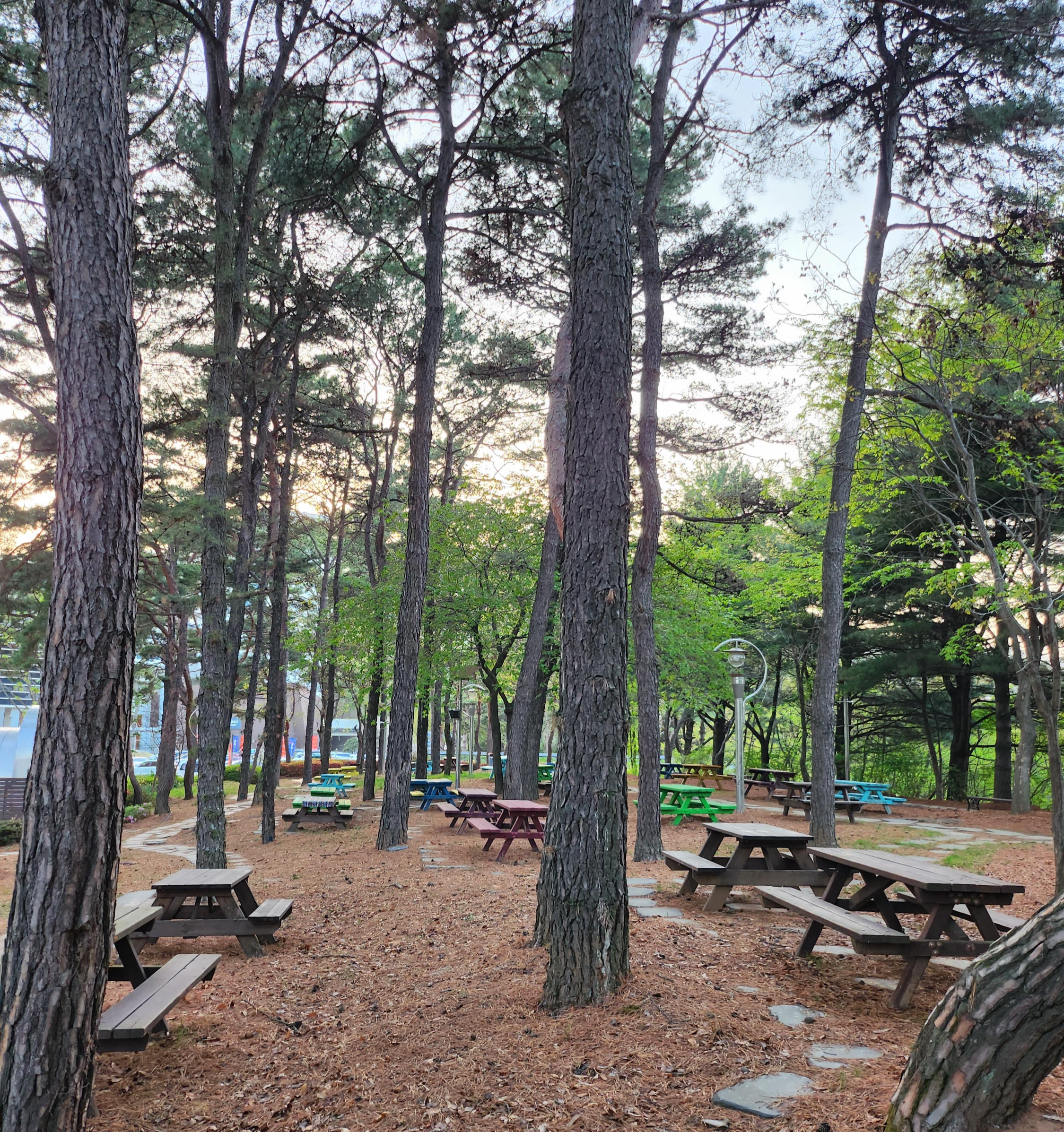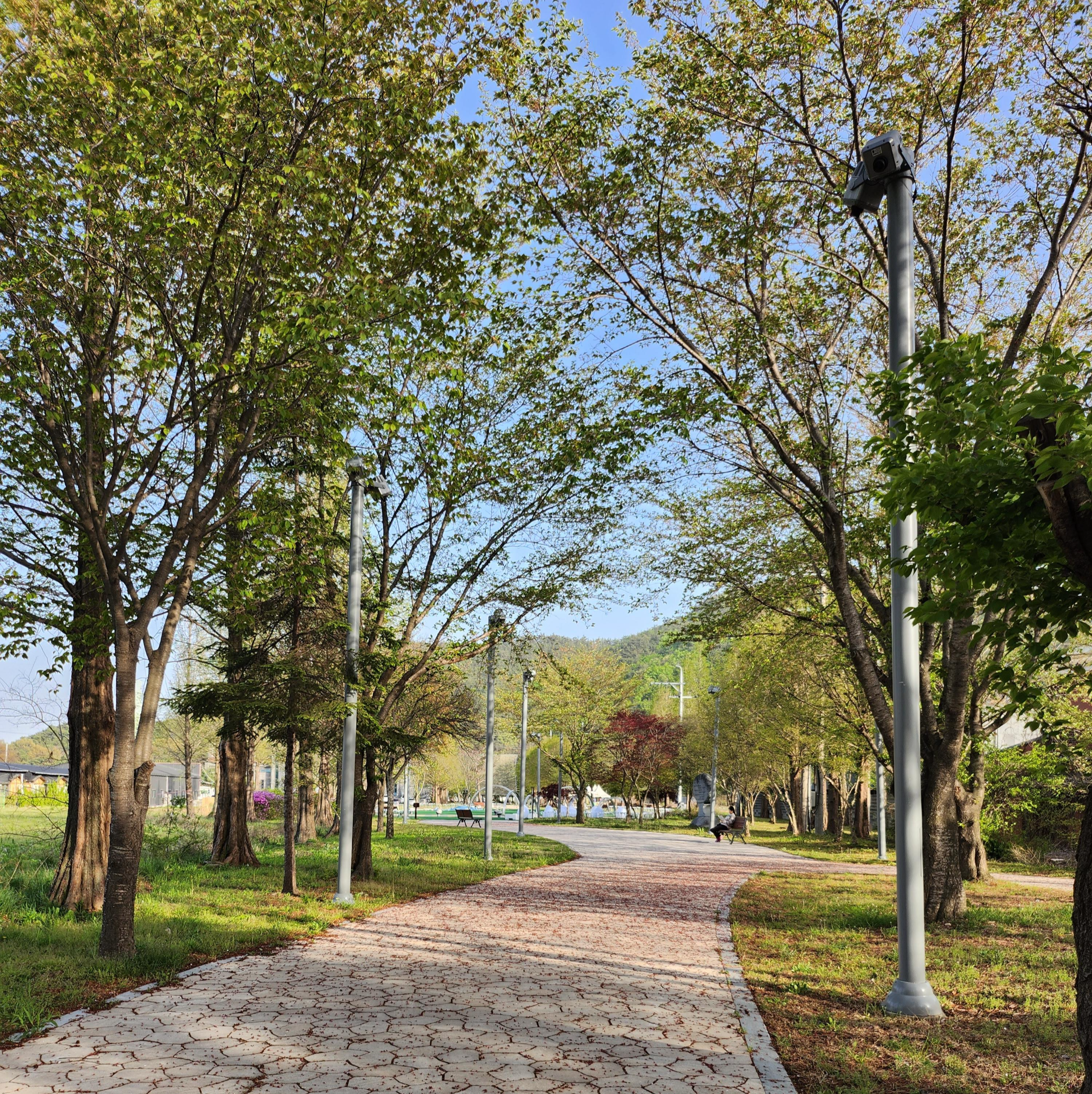 덕산온천 입구에 소풍 같은 숲이 펼쳐져 있네요.