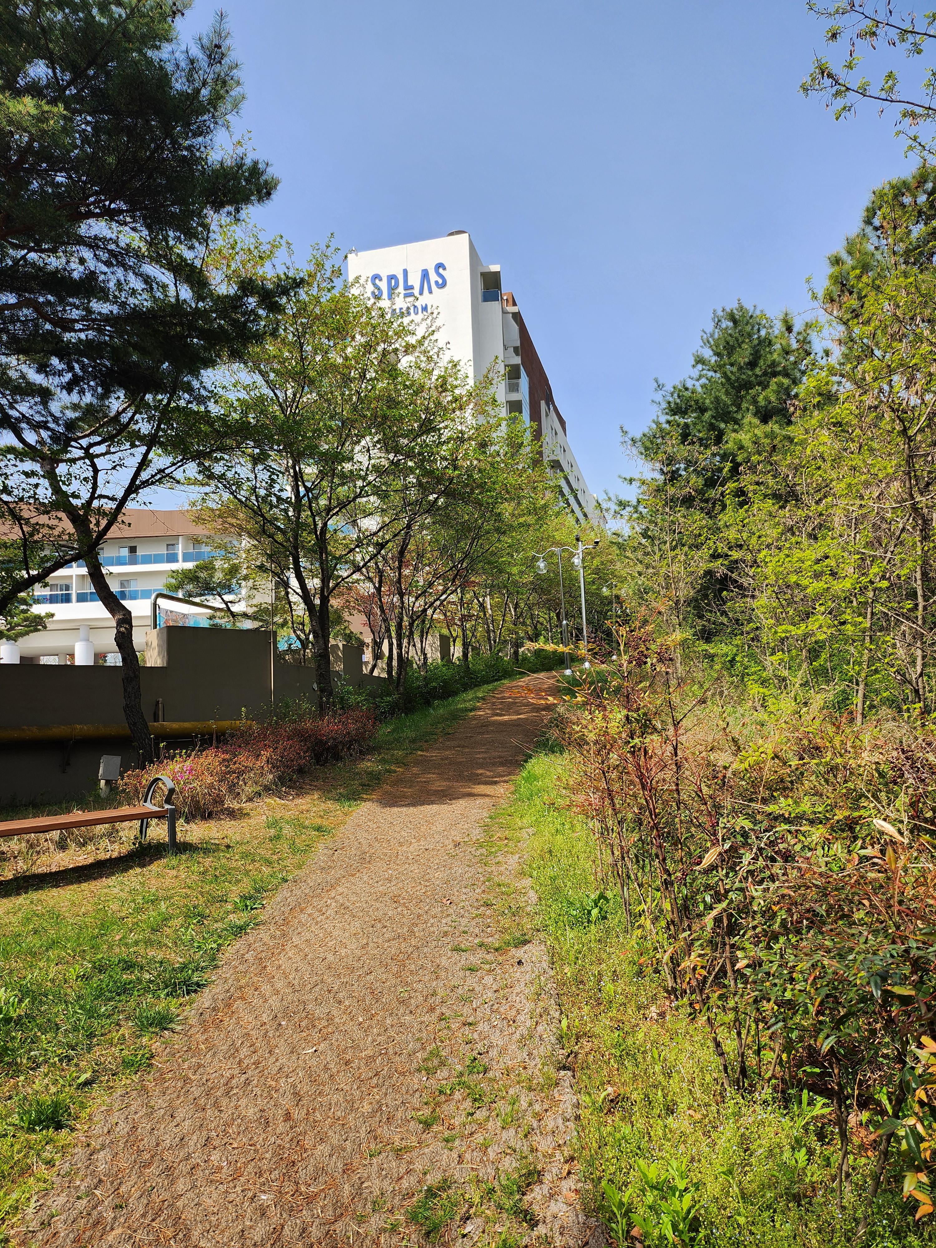 아침 6시에 일어나 사우나를 하고 체크아웃을 하고 스테이 둘레길을 걸었어요. 스테이 둘레길은 우리가 묵었던 스테이타워 뒤쪽부터 리조트를 한 바퀴 도는 길이에요.