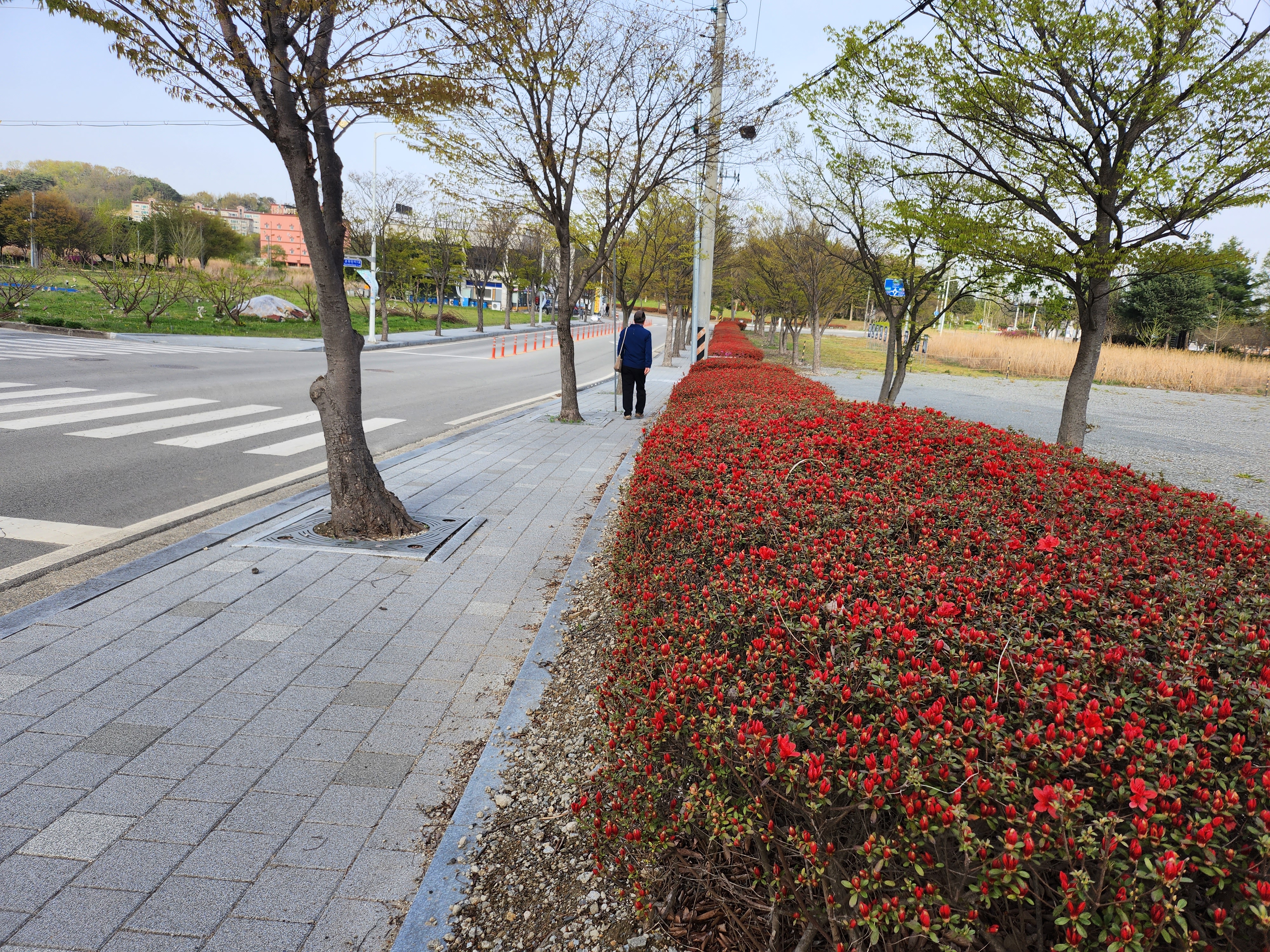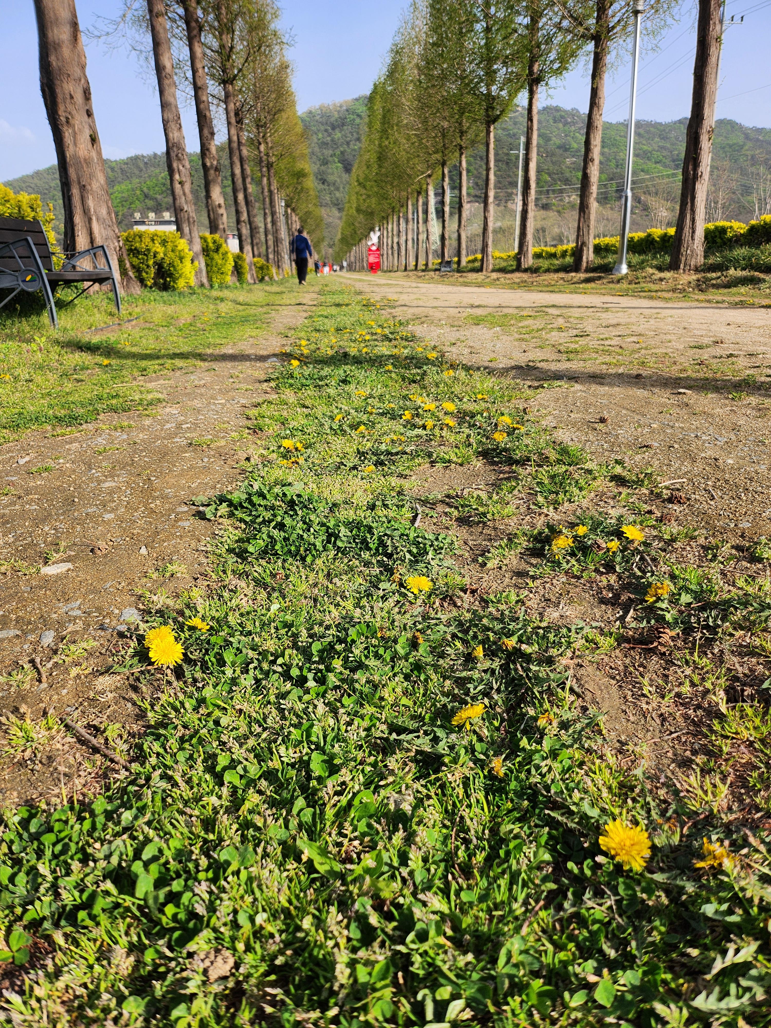 가로수길 중앙에는 일부로 중앙선을 만들기라도 한 듯이 크로버와 민들레가 가로수 길을 더 명품길로 만들어 주네요. 걸으면서 마음이 아주 편안해지는 시간이었어요.