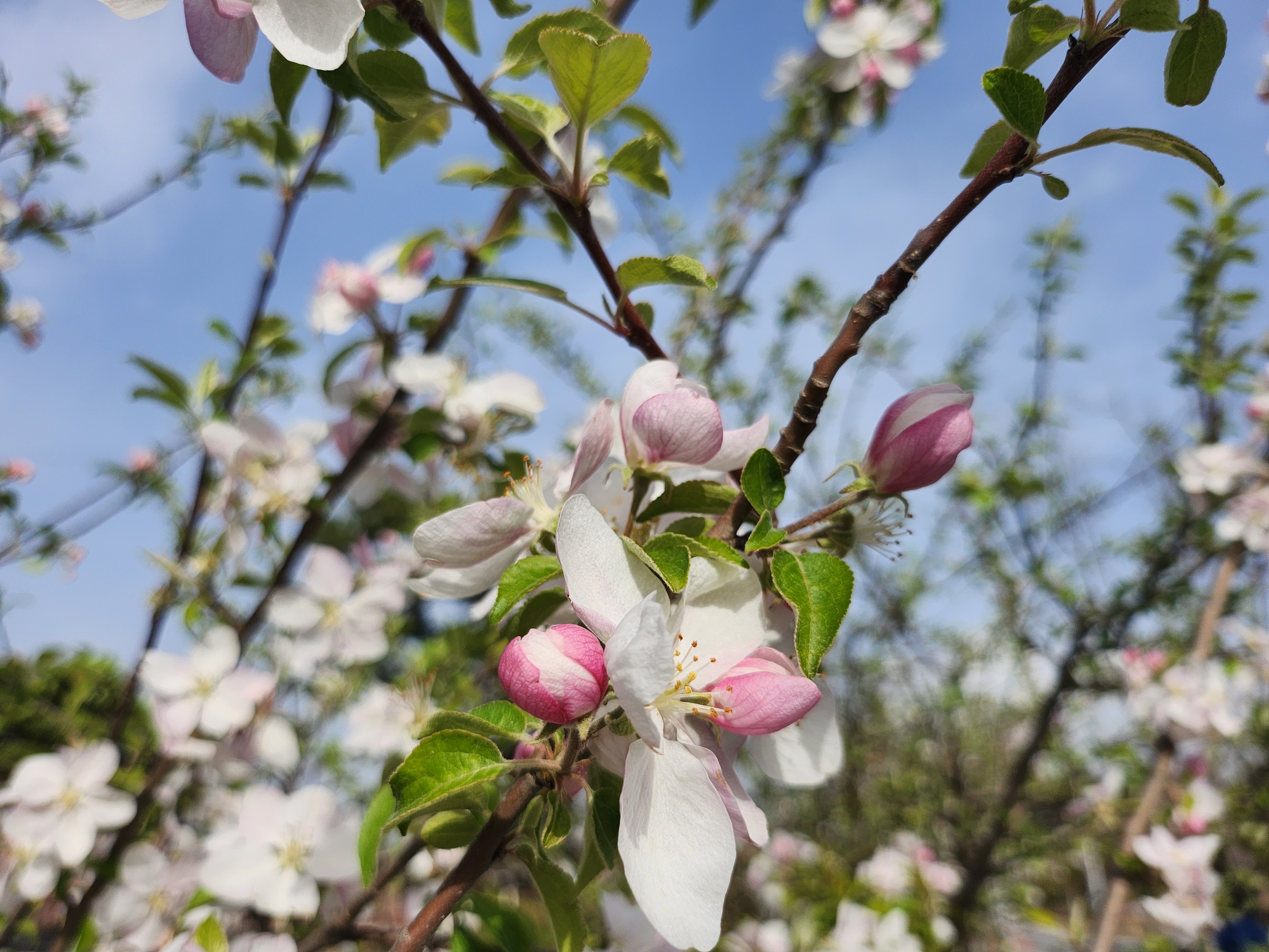 사과가 많이 생산되는 지역이라 어딜 가든 사과꽃이 많아요. 사과꽃봉오리는 진한 핑크인데 꽃이 피면 연한 분홍색이 되어요. 정말 예쁘네요.