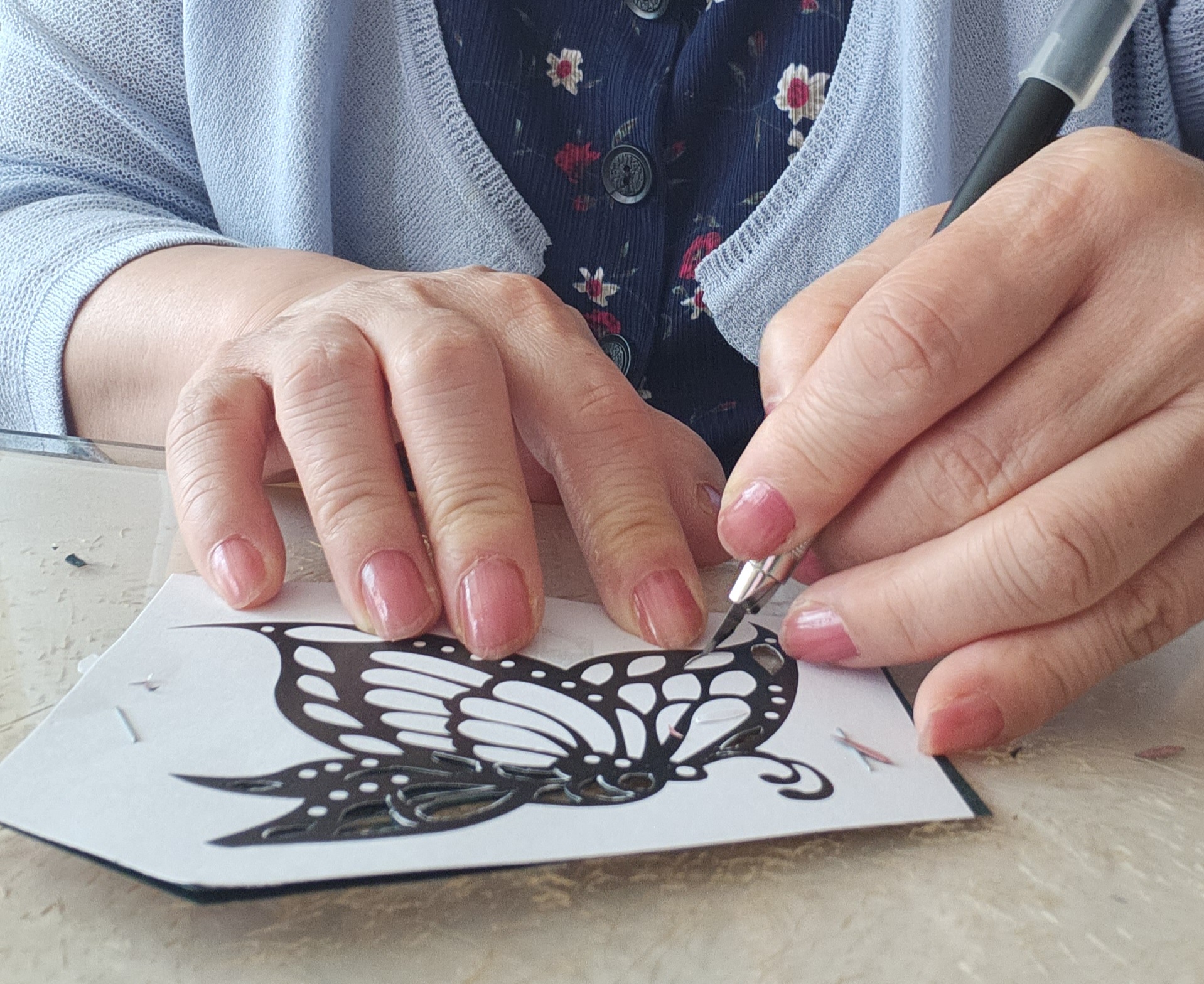 나비도 4마리 만들 거예요. 문양을 한창 팔 때는 8배 접도 했는데 요즘은 그렇게는 안 하고 4장 정도는 가볍게 파낼 수 있어서 그나마 다행이지요^^. 공예는 정성이 없이는 만들어지지가 않네요.