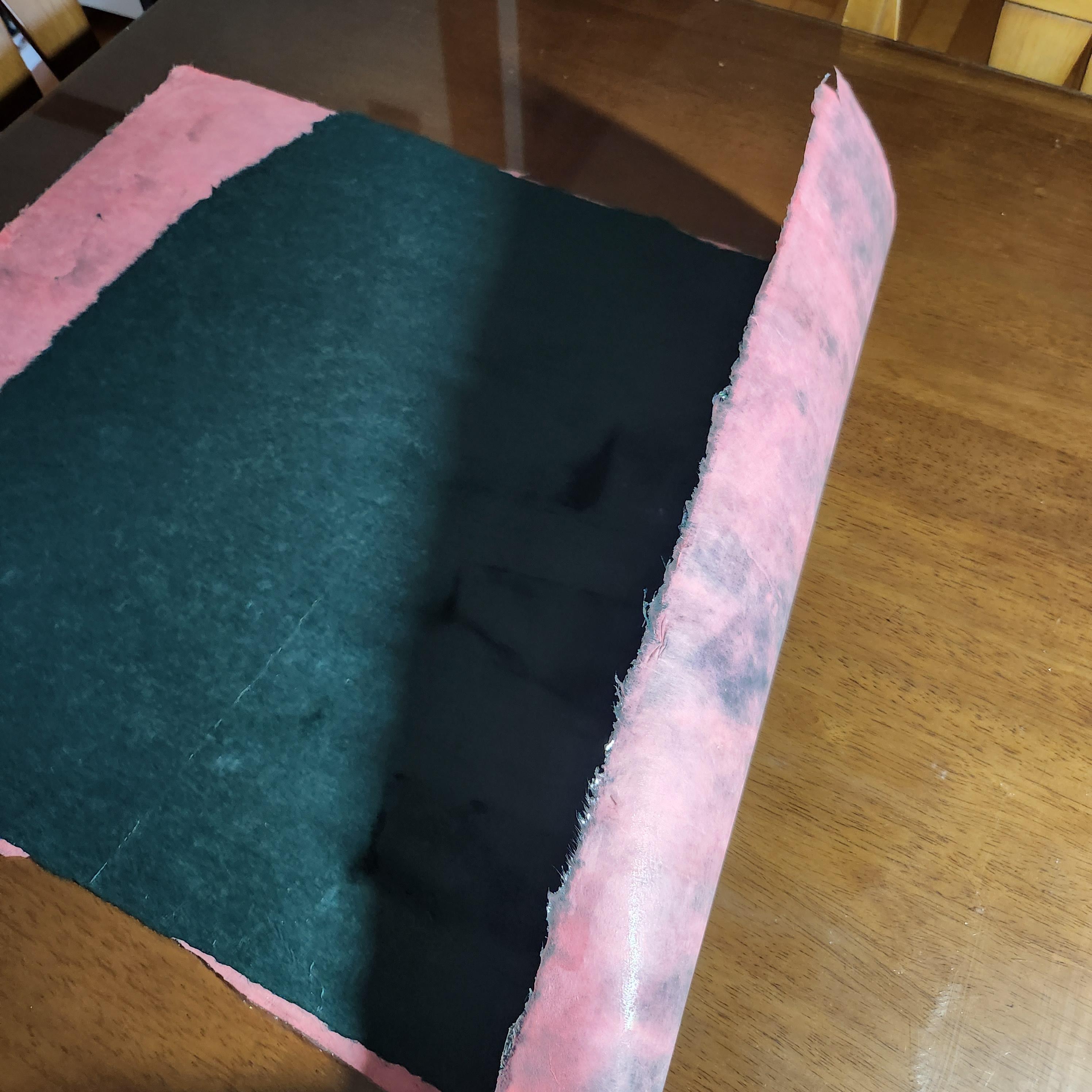 오늘은 문양을 파려고 배접지를 만들었어요. 두껍지 않게 2장만 붙여서 간단하게 만들고 색도 초록을 쓸 거라서 잘라서 쓰고 남은 한지로 배접을 했어요.