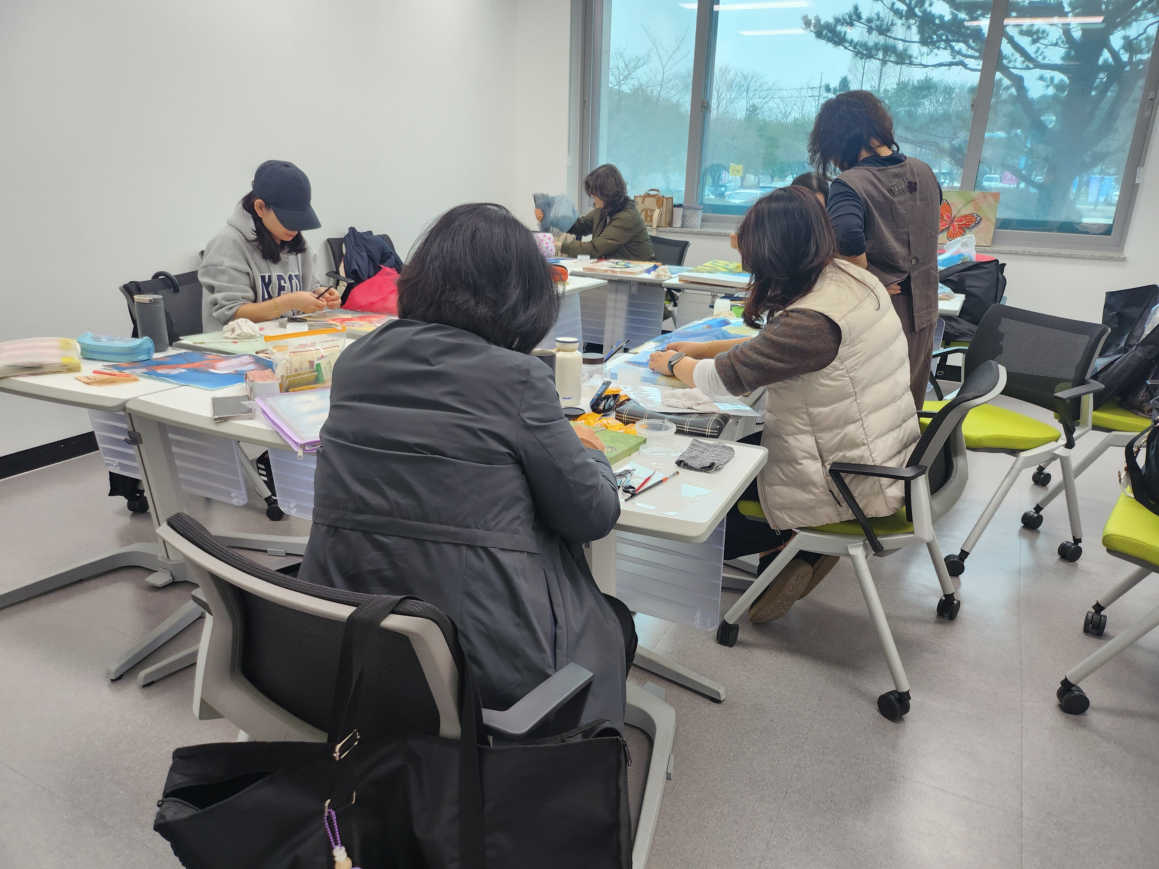 3월의 첫 한지그림 작업 장소가 바뀌었어요. 오늘은 새로운 장소의 기대감에 모두들 들떠있는 듯하네요. 오늘 첫모임이 있던 곳은 화성 시민 대학입니다. 전에는 한국 농수산 대학교가 있던 곳입니다.