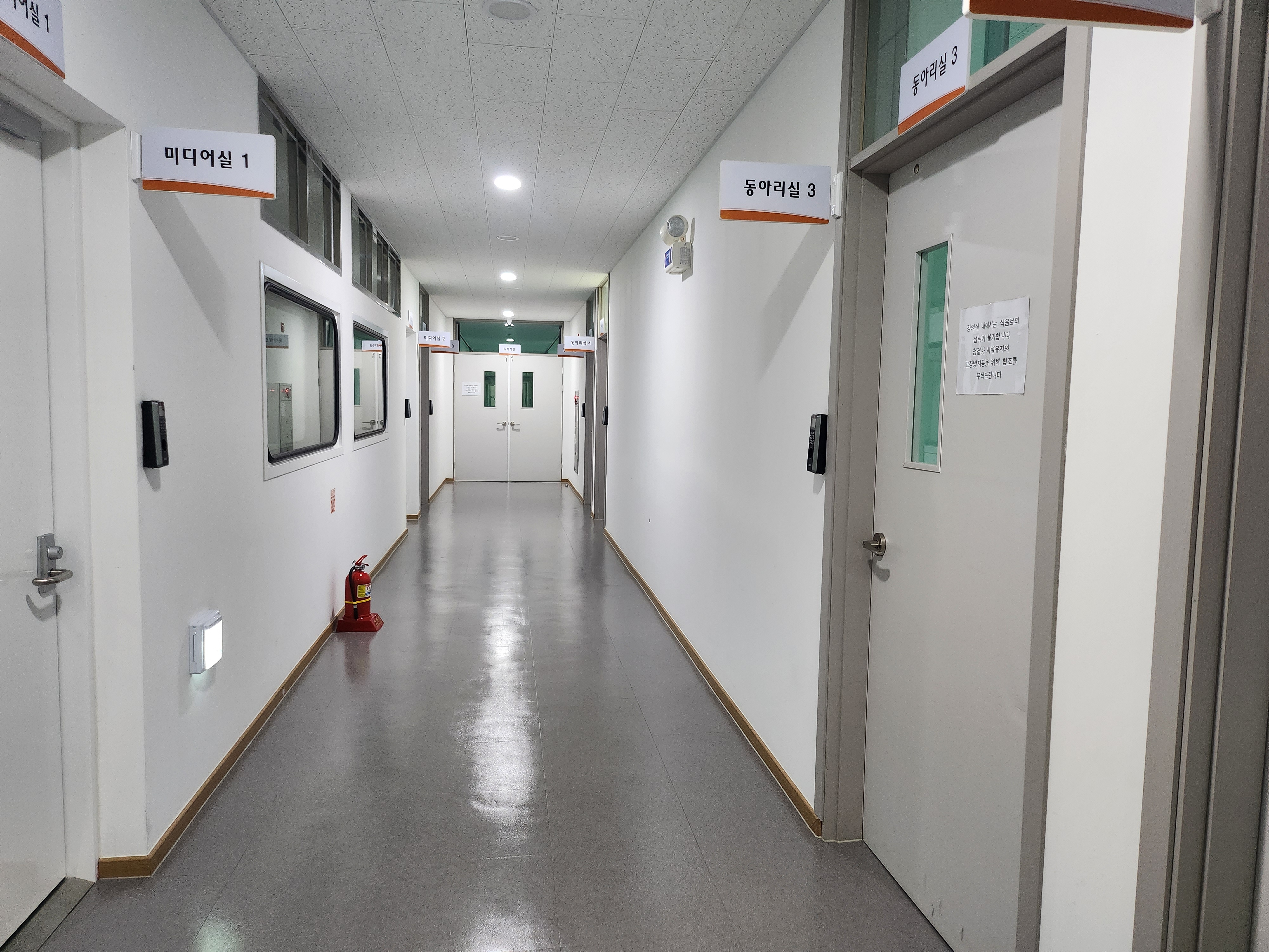 이 건물은 4층건물에 한지그림을 하는 곳은 1층에 있는 동아리실 3호 복도에 반질반질 깨끗한 게 산뜻하네요.
