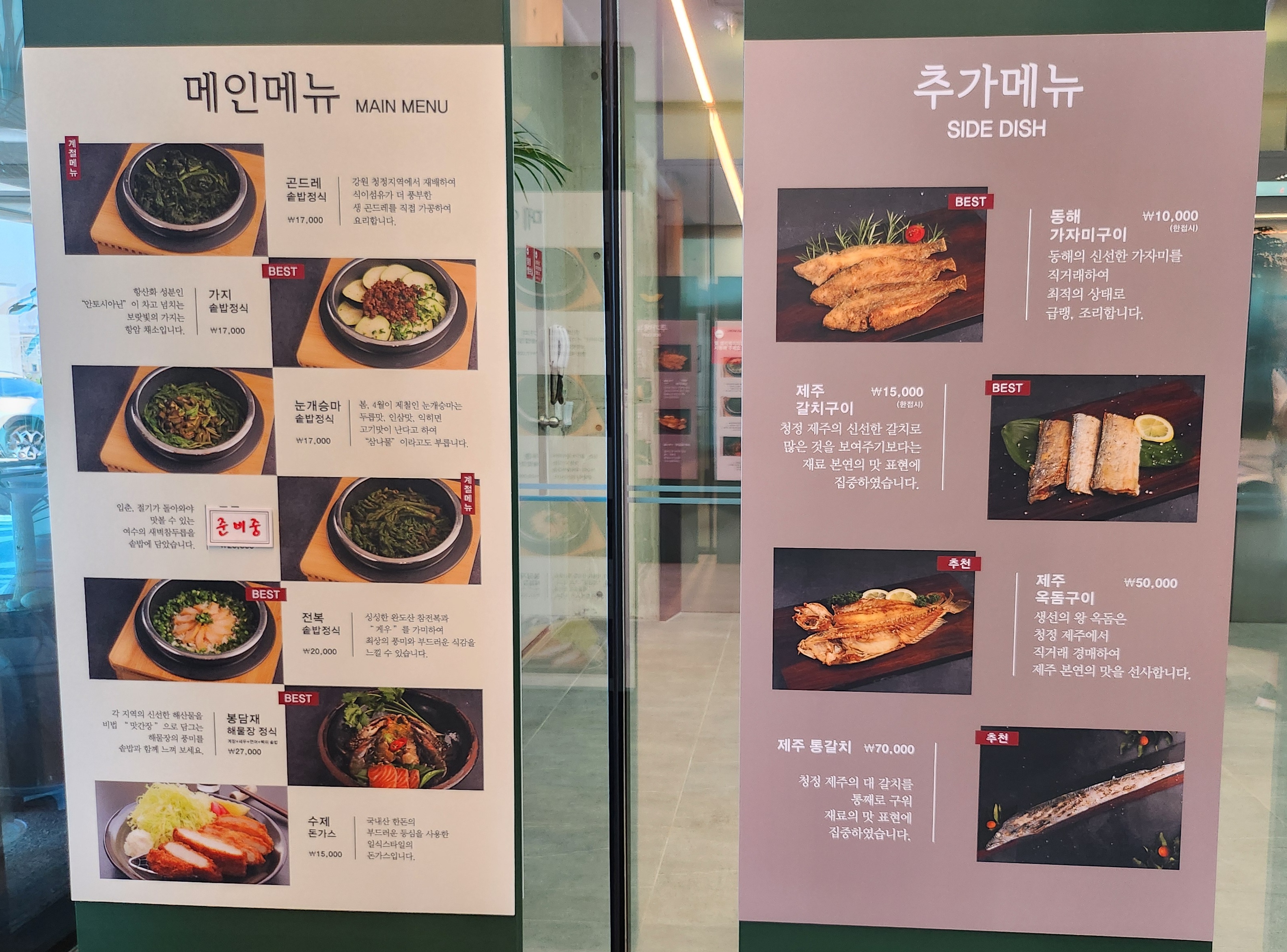 봉담재의 메뉴입니다 메뉴가 다양해서 몇 번은 더 와도 좋을 거 같아요. "철 따라 한국의 산, 바다에서 최고의 재료를 찾아내고 재료의 다양한 맛을 한식으로 표현합니다"라고 적혀있어요. 한식을 좋아하는 분들의 맛있는 한 끼 식사로 추천하고 싶네요.
