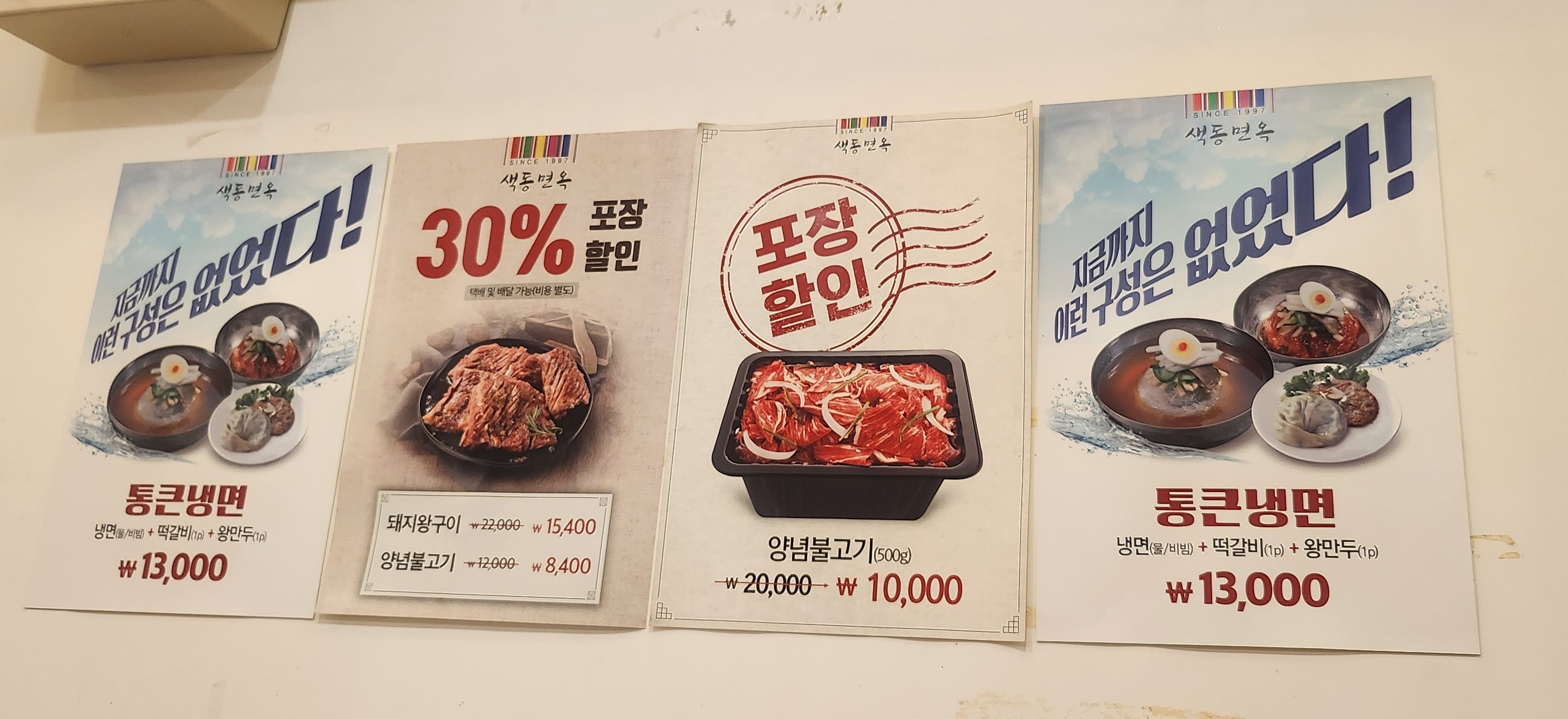 색동면옥 고기 메뉴들이 여기 있네요. 다음에는 고기도 함께 먹어야겠지요^^.