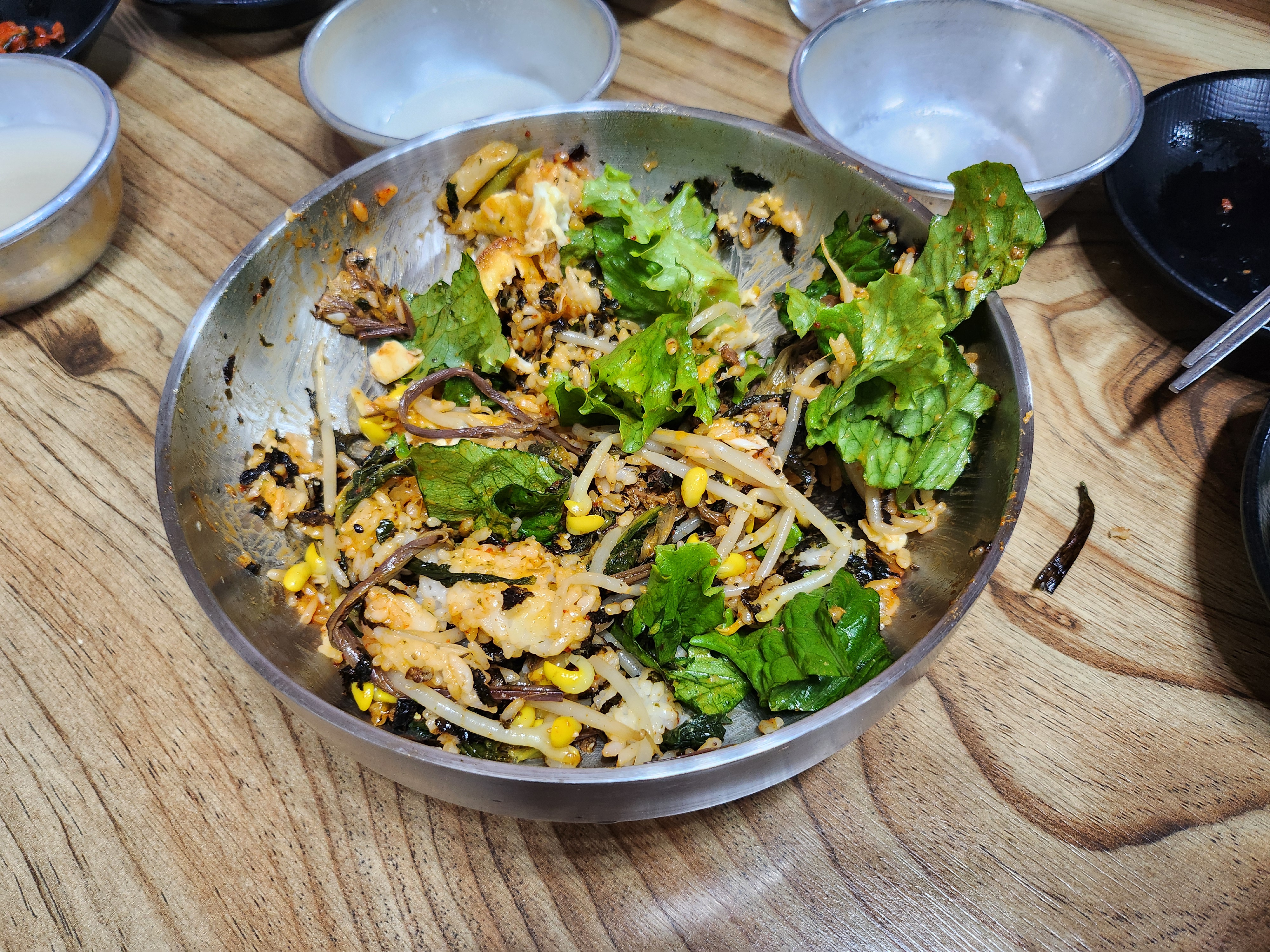 전을 먹고 국밥, 잔치국수, 비빔밥을 함께 먹었는데 면을 좋아하는 저는 잔치국수를 집중 먹었어요. 멸치국물도 맛있어서 국물을 별로 안 좋아하는 저도 후룩후룩 국물까지 마시고 나왔어요. 즐거운 식사시간이었어요ㅎㅎㅎ.