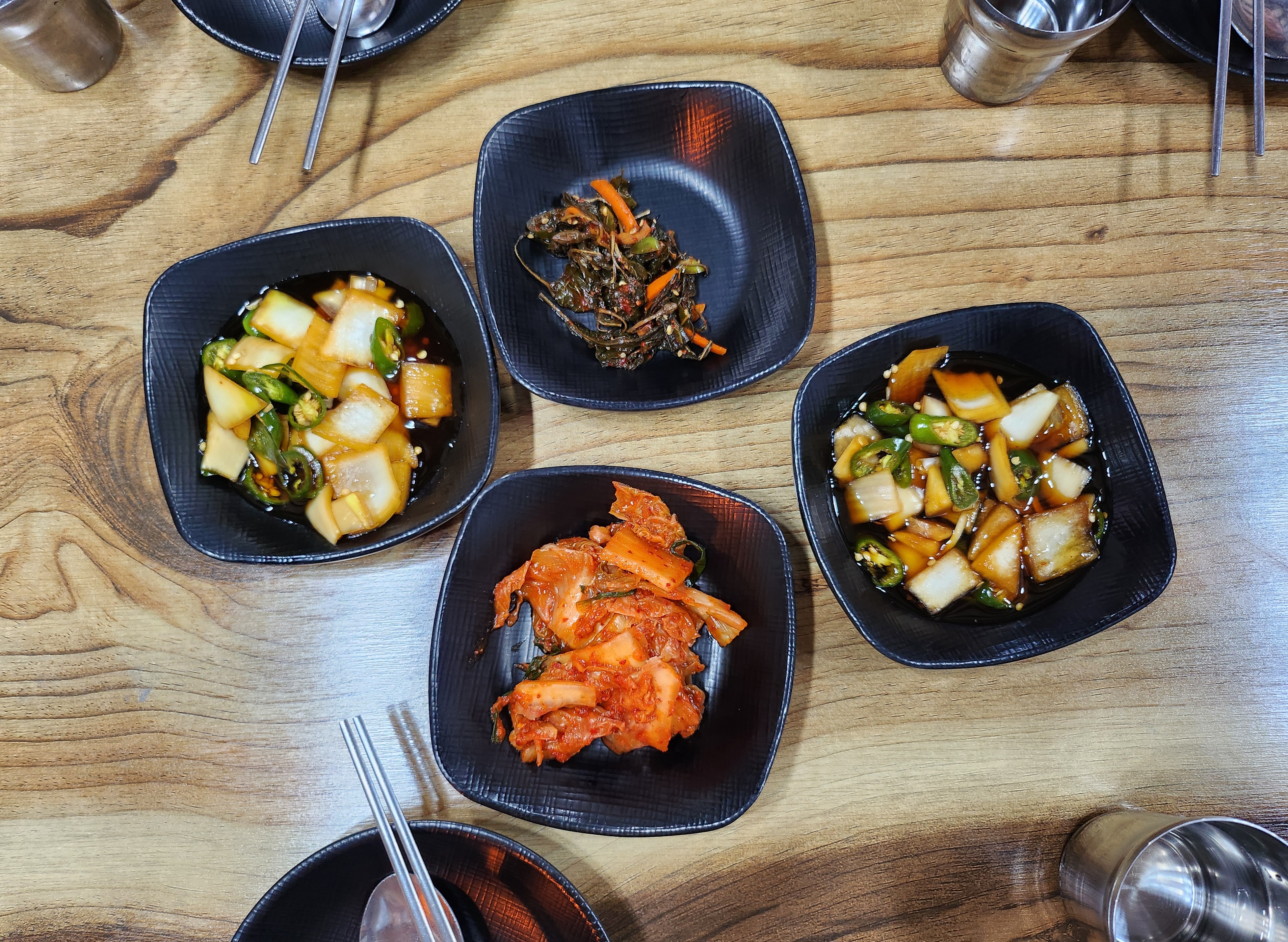 전을 주문하면 반찬을 주시는데 고춧잎나물과 김치, 그리고 전을 찍어 먹을 양파간장이 정말 맛있네요 전위에 양파 한쪽 올려서 먹으면 전의 느끼함도 잡아주고 양파간장 만한 것이 없더라고요.