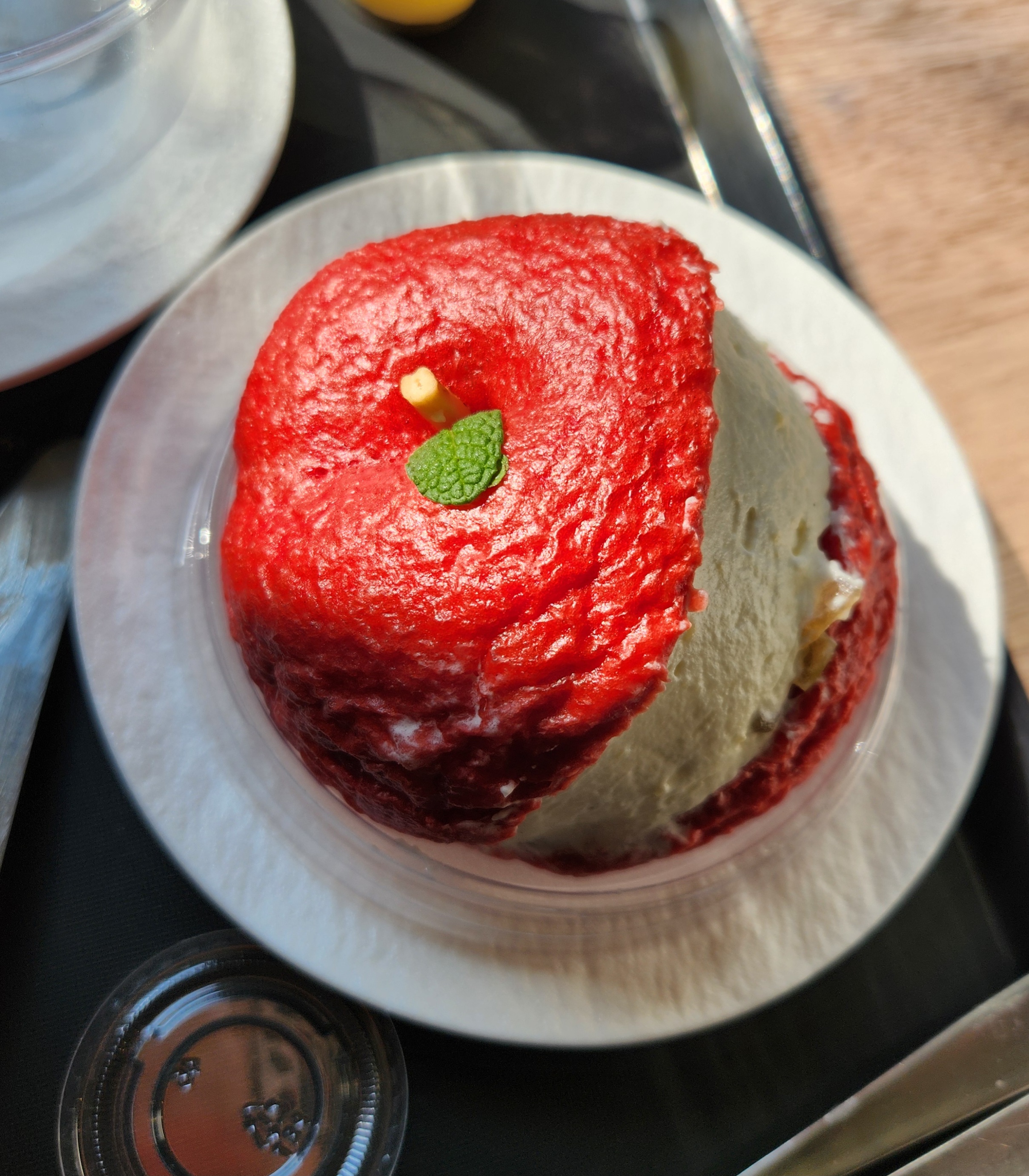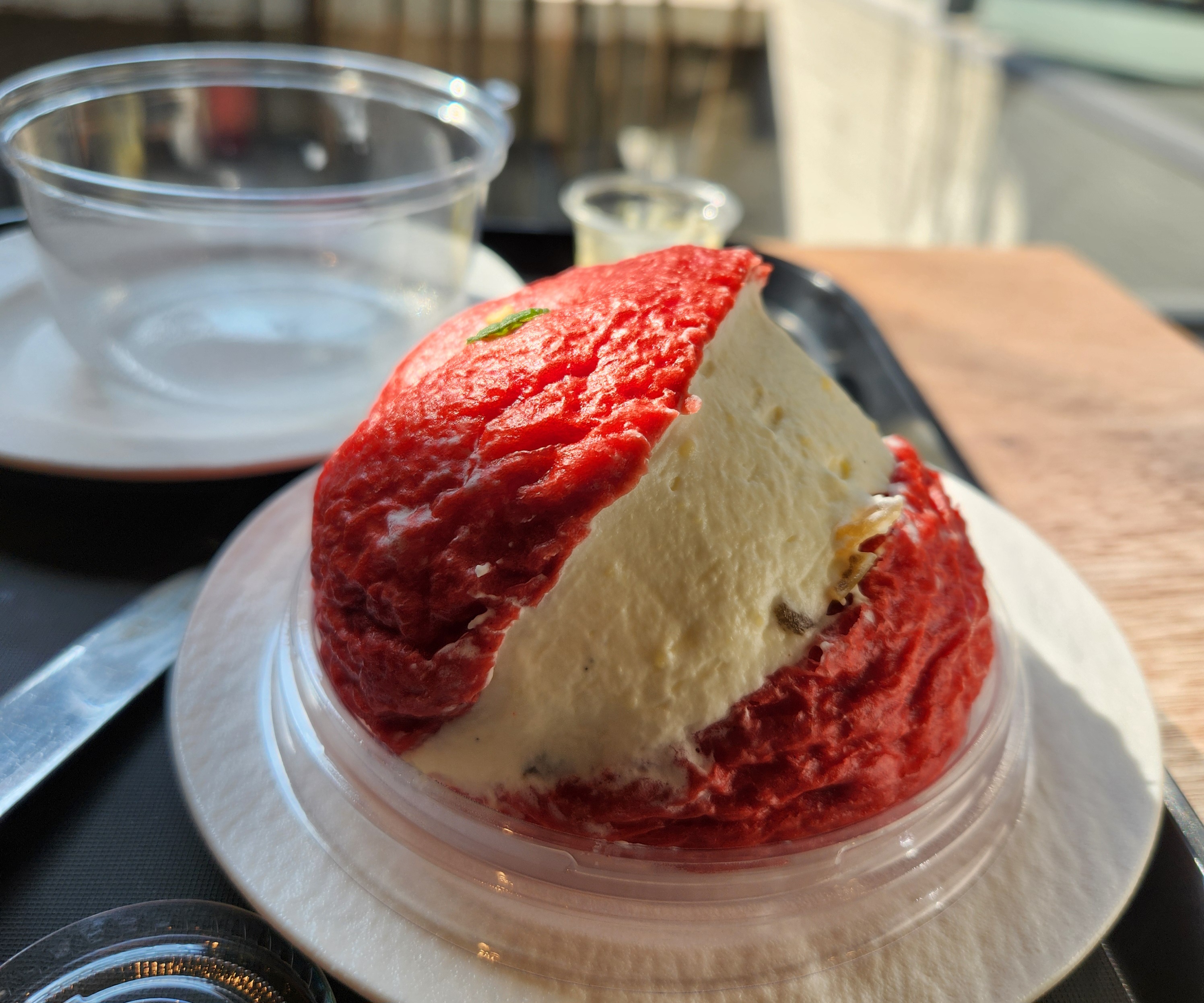 테이블이 여유 있게 거리를 두고 앉을 수 있어서 그런지 좌석이 공간에 비해서 많지는 않네요. 그래도 저는 아주 멋진 곳에 자리를 잡았지요 등받이 없는 벤치지만 배경이 너무 맘에 드네요 딸을 기다리면서 멍 때리고 앉아 있는데 좋았어요. 좀 앉아있는데 자리를 찾지 못한 여자분 두 명이 같이 앉으면 안 되냐고 하기에 어차피 딸이랑 붙어 앉아 놀 거라서 인심도 썼어요^^