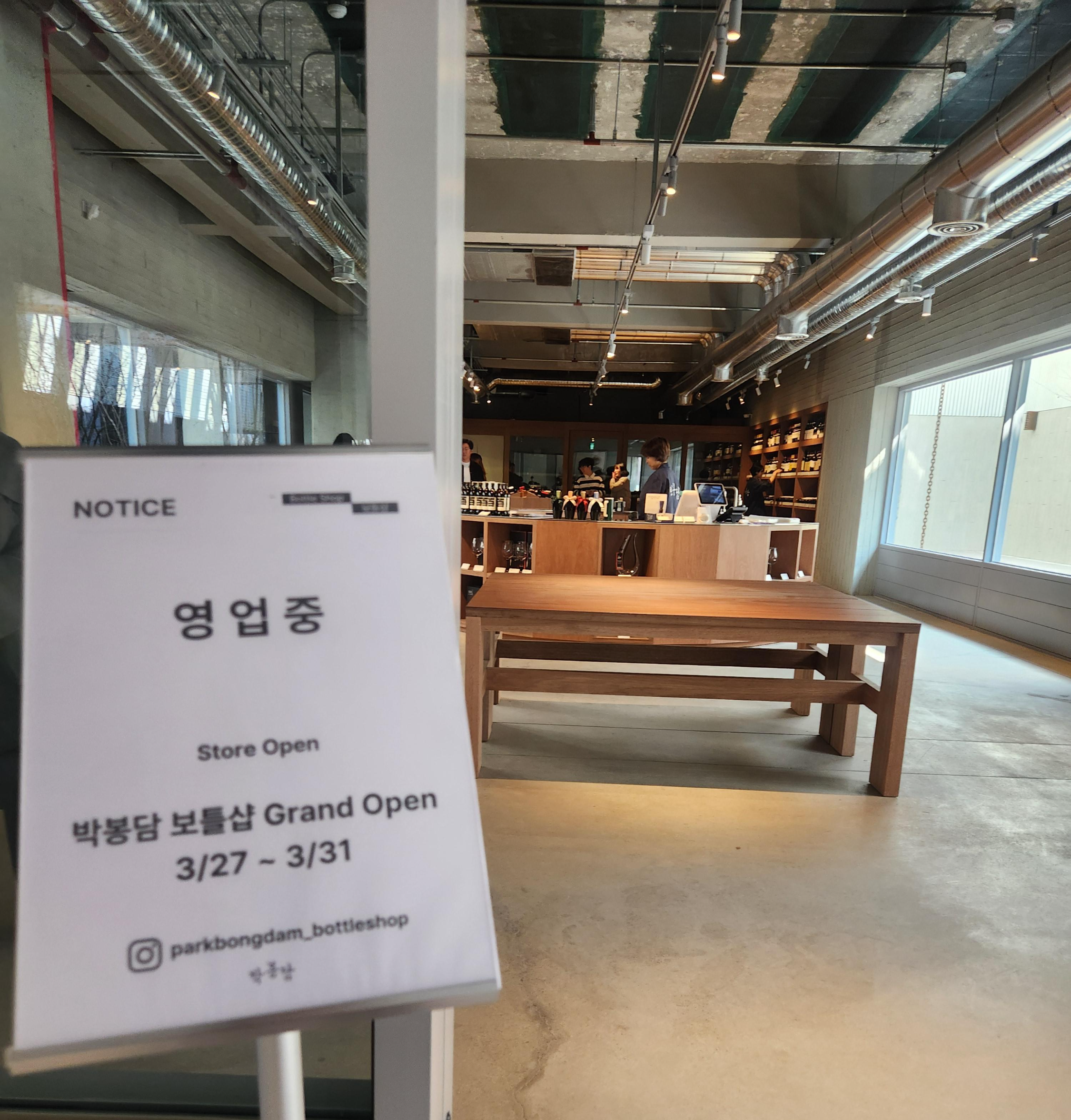 보틀샵 안으로 들어가 보면 국순당에서 만드는 막걸리부터 와인까지 다양한 술이 모여 있네요 두어 바퀴 돌면서 구경하고 필요하면 한번 와보자 하며 깜빡 잊고 있었던 커피주문을 하러 갑니다
