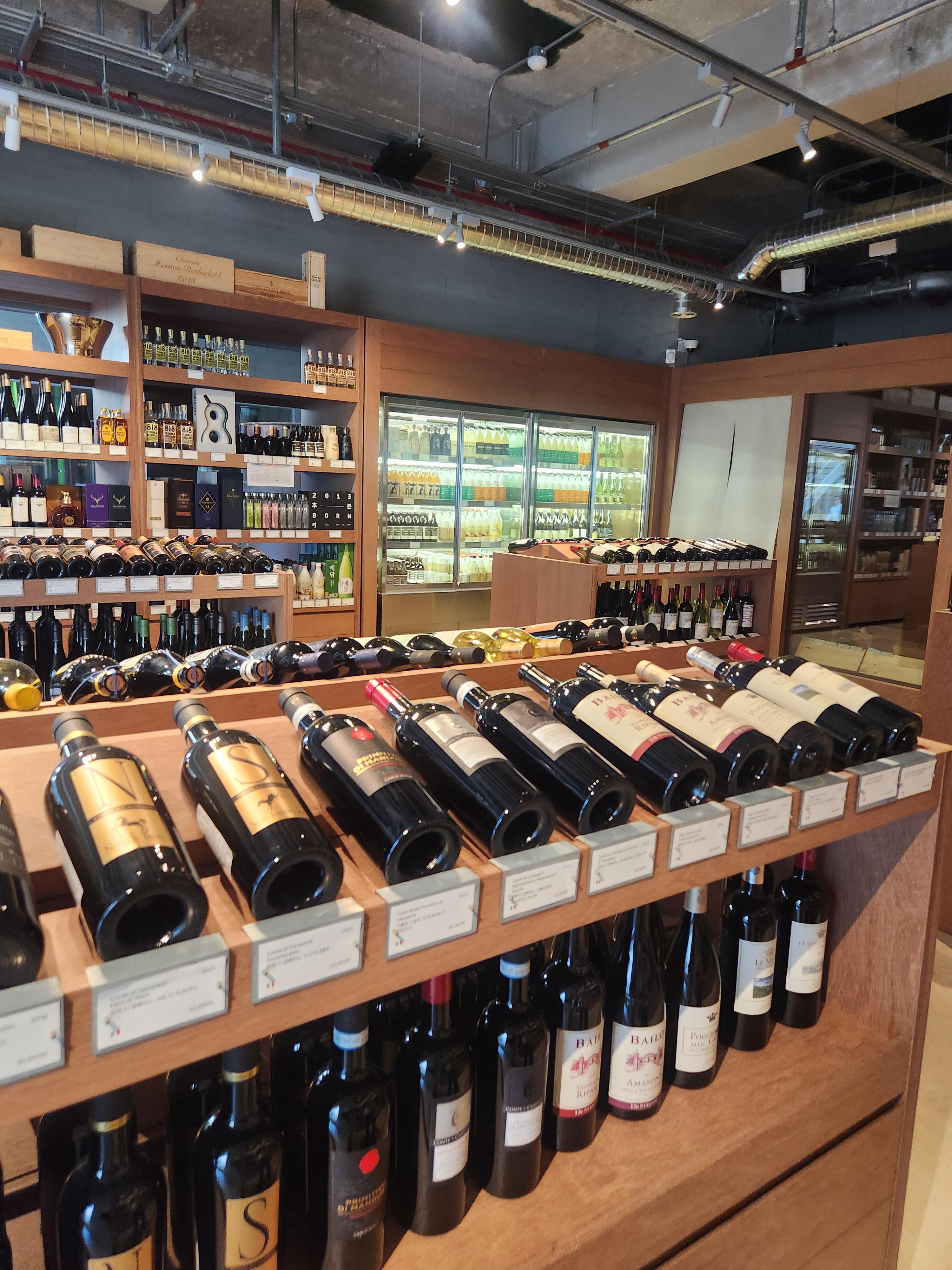 1층 안쪽으로 들어가면 보틀샵이 있어요. 여기서 술을 구입하는 분들도 보이네요. 저도 구경도 할 겸 한 바퀴 돌아봤는데 국순당에서 주조하는 술뿐만 아니라 다양한 와인들도 많이 있네요