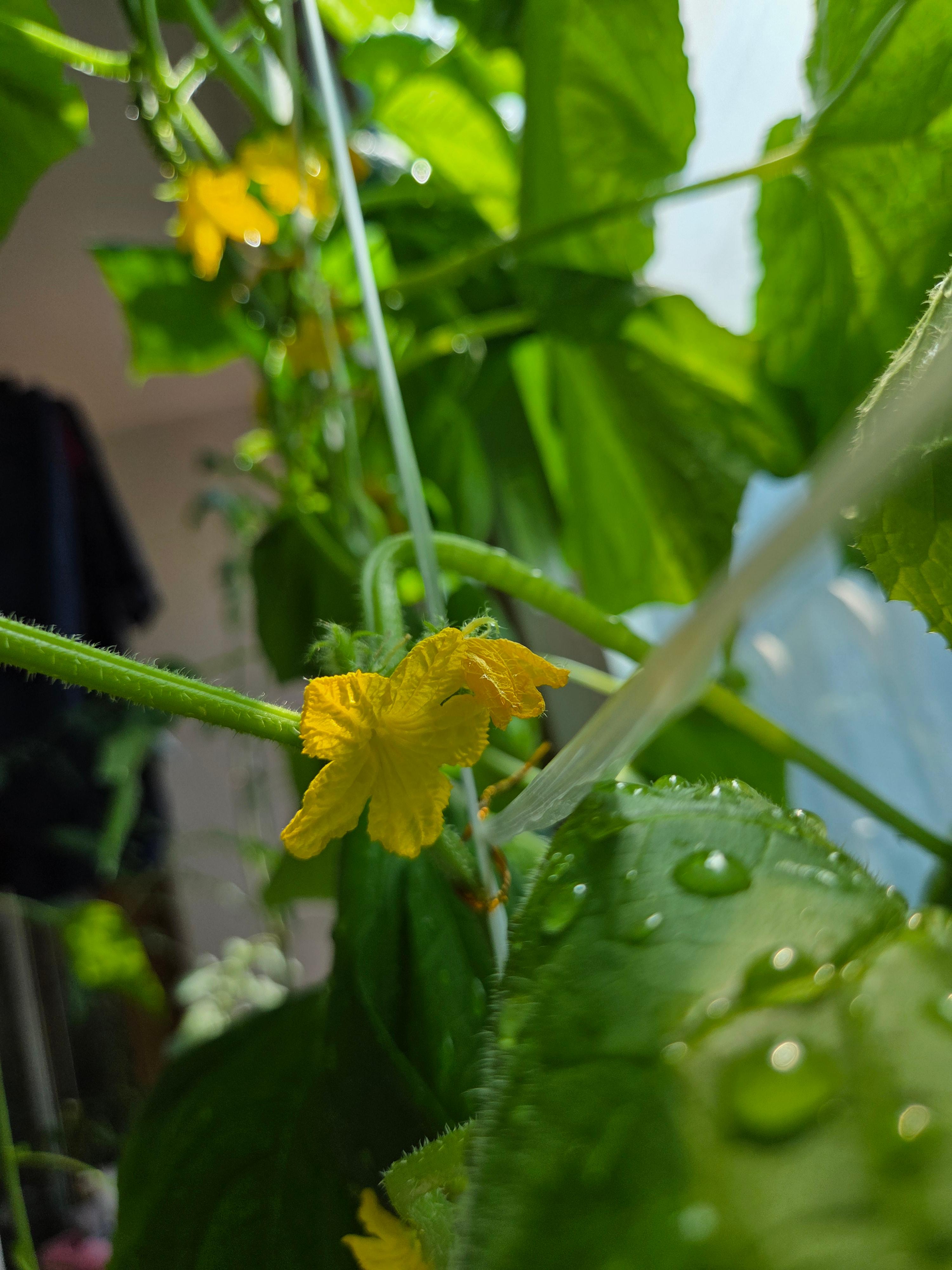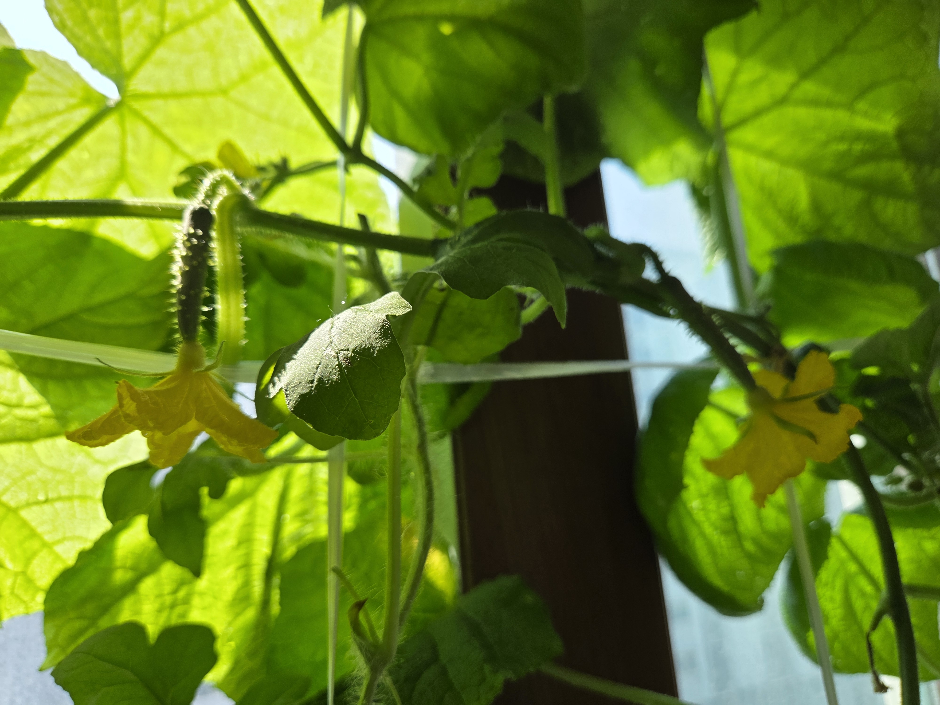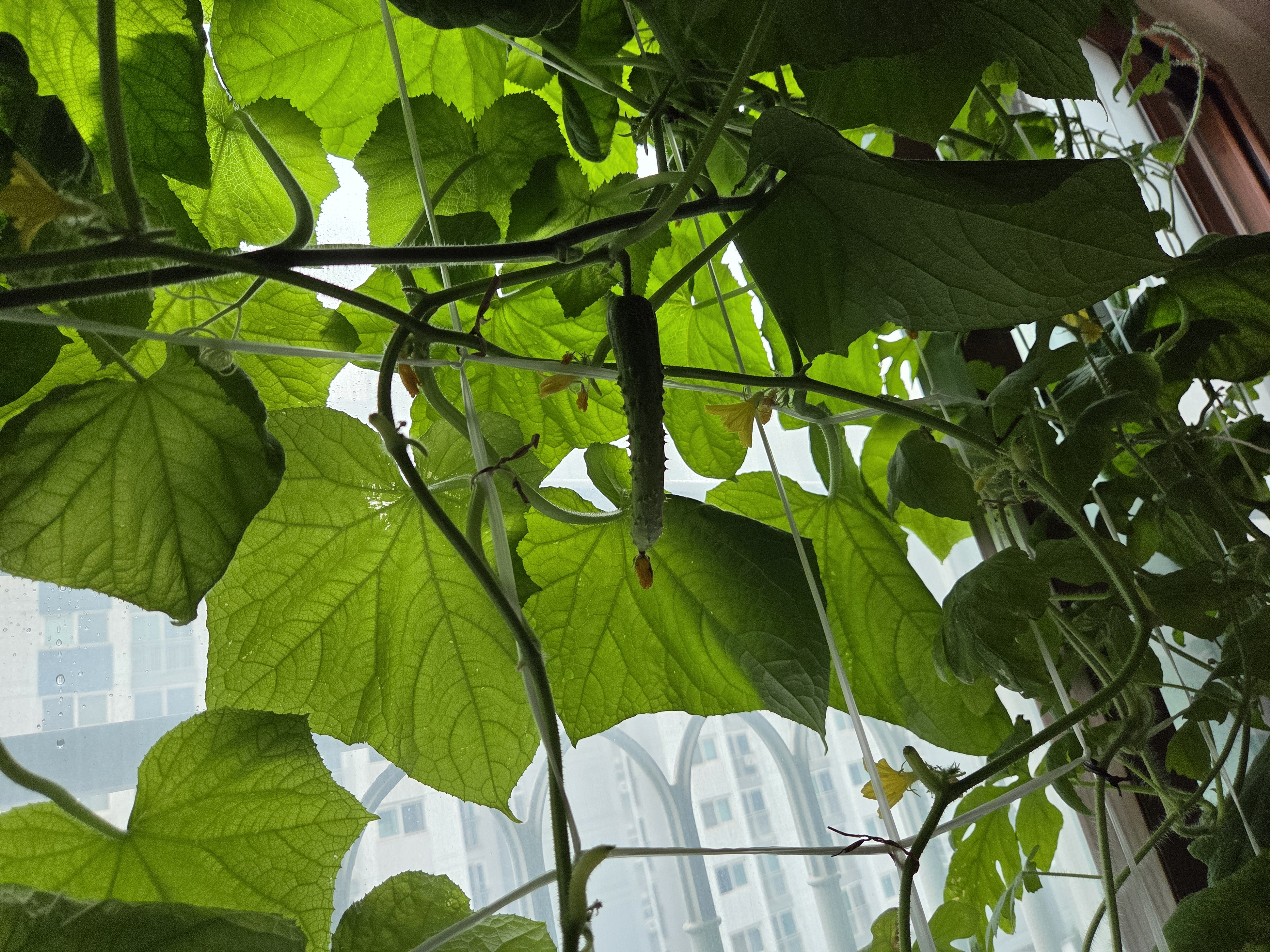오늘 물 주면서 새로 맺히기 시작한 오이를 찍으면서 저절로 입가에 미소가 지어지네요