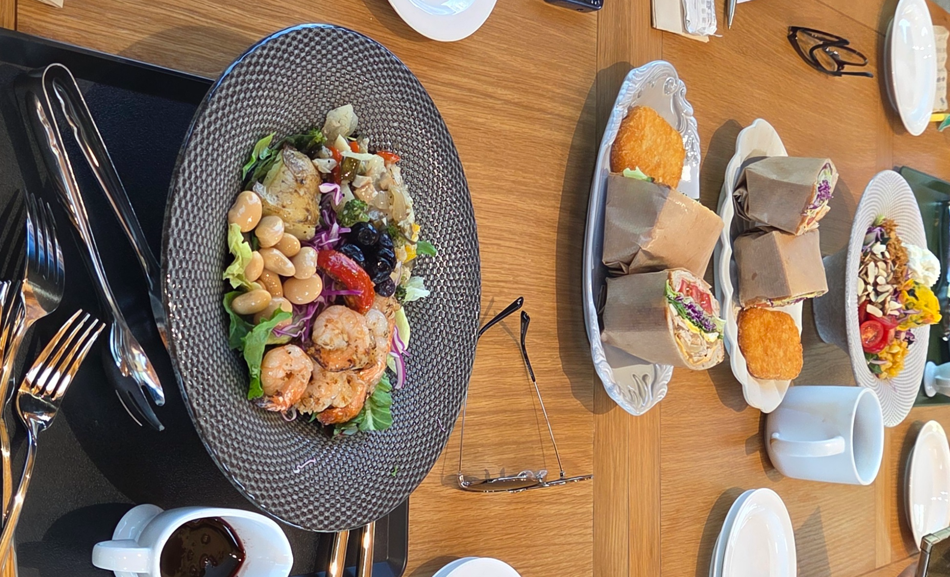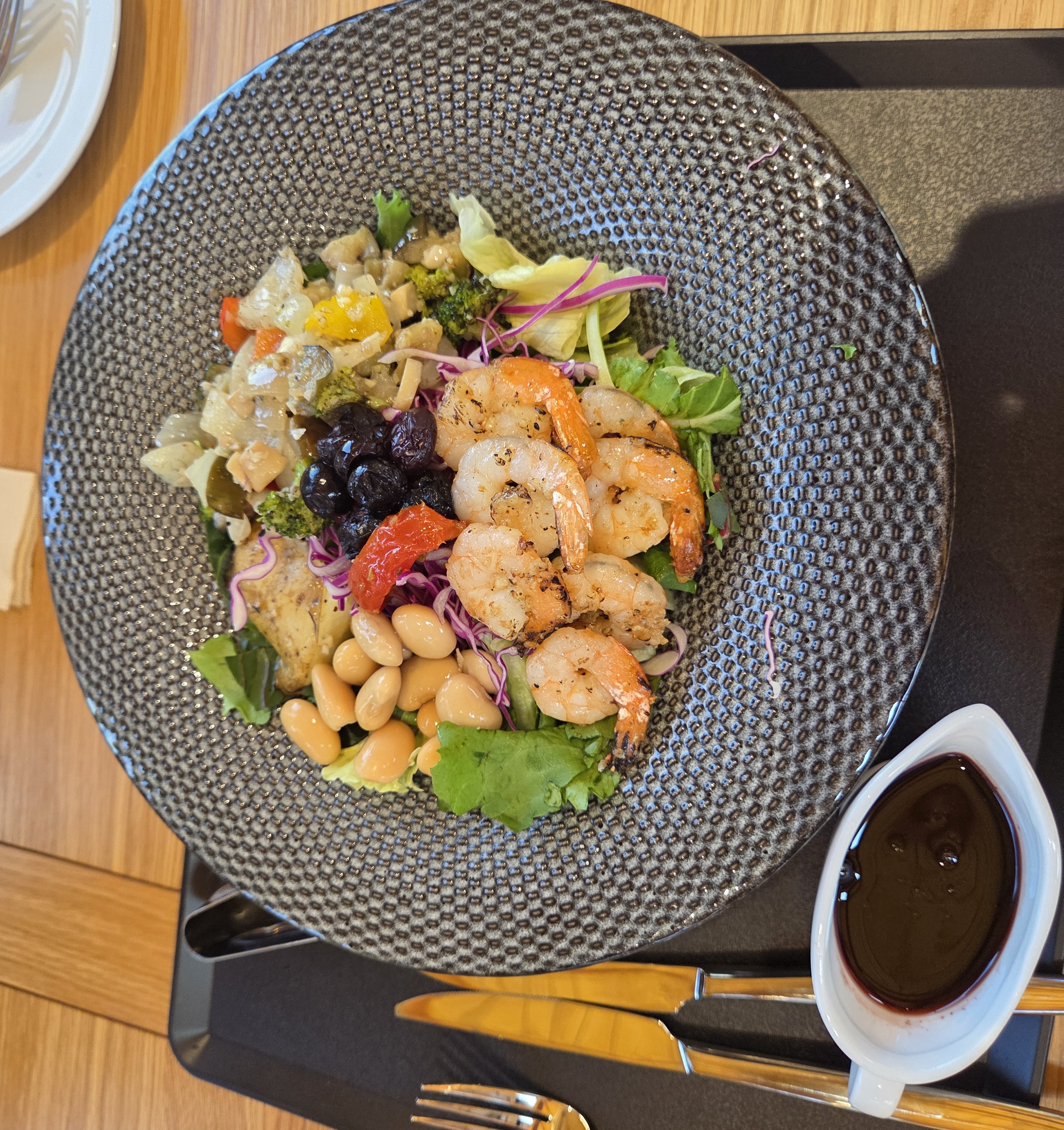 파네시마에서 먹은 단호박 리코타 샐러드, 갈릭 쉬림프 그릴드 샐러드는 따로 담아 나오는 소스를 뿌려서 먹으면 되는데