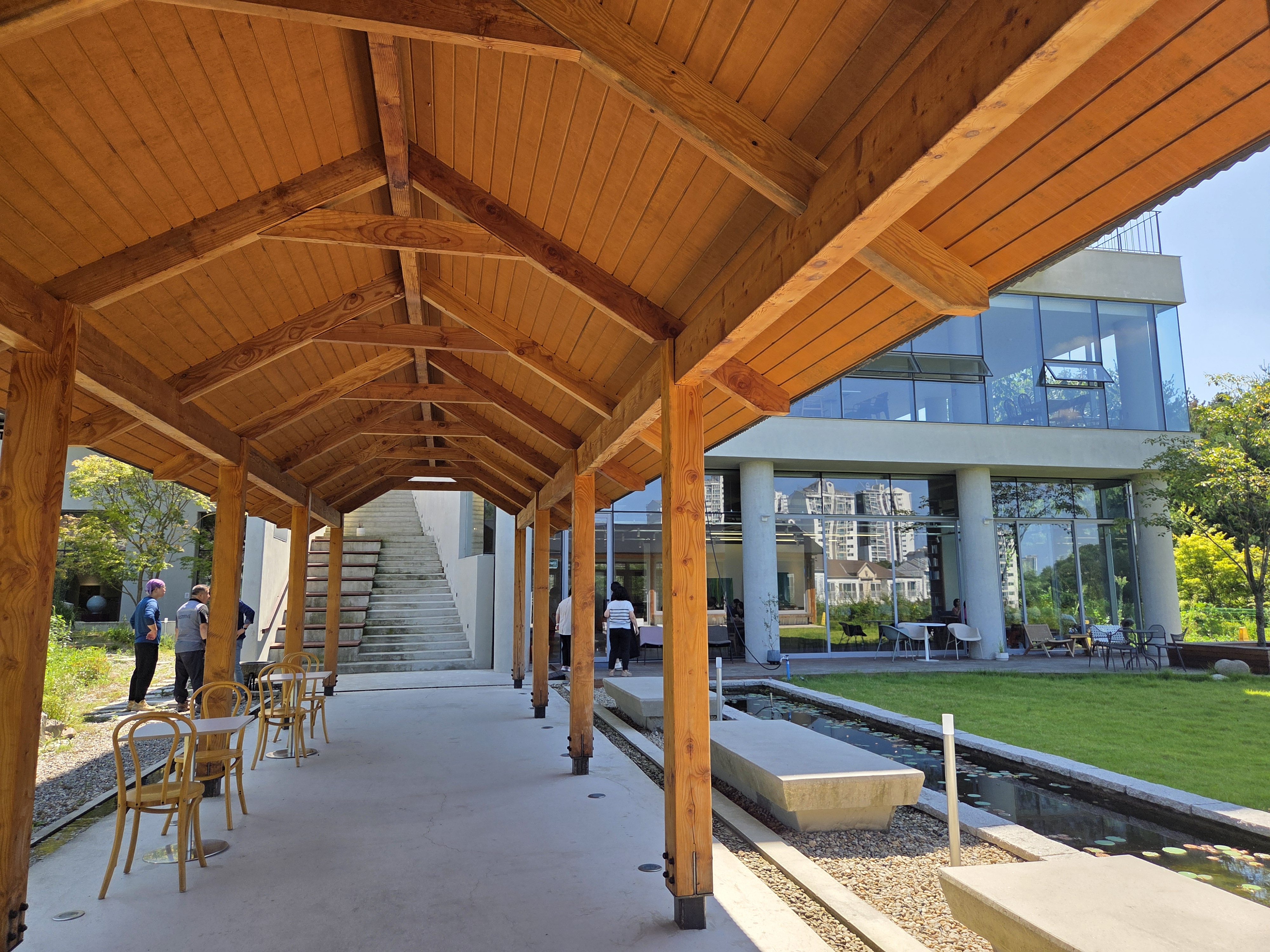 두 개의 건물을 이어주는 곳에 잔디와 작은 연못은 걸음을 멈추고 모두 함께 서로 다른 곳으로 셔터를 눌러주네요