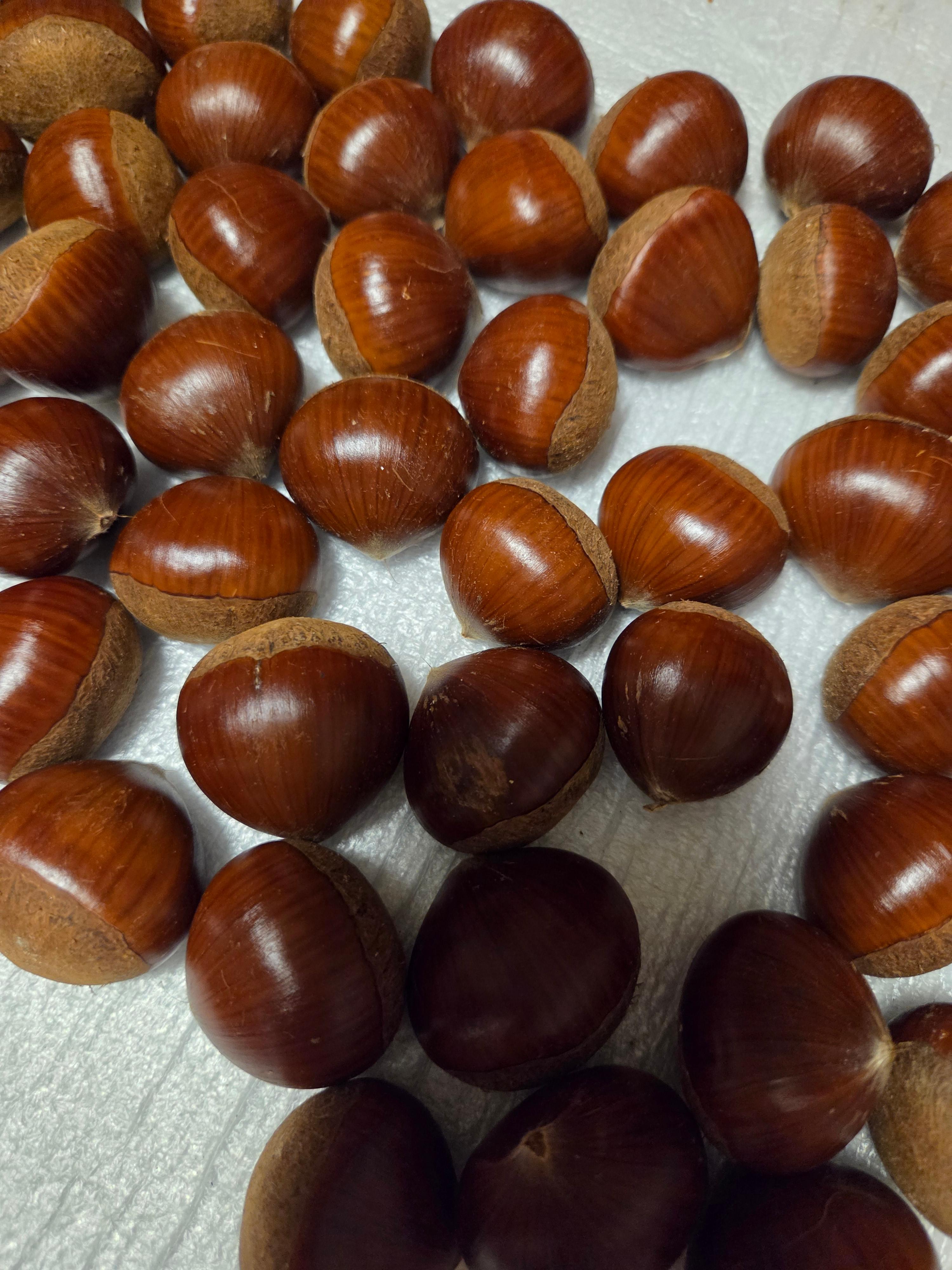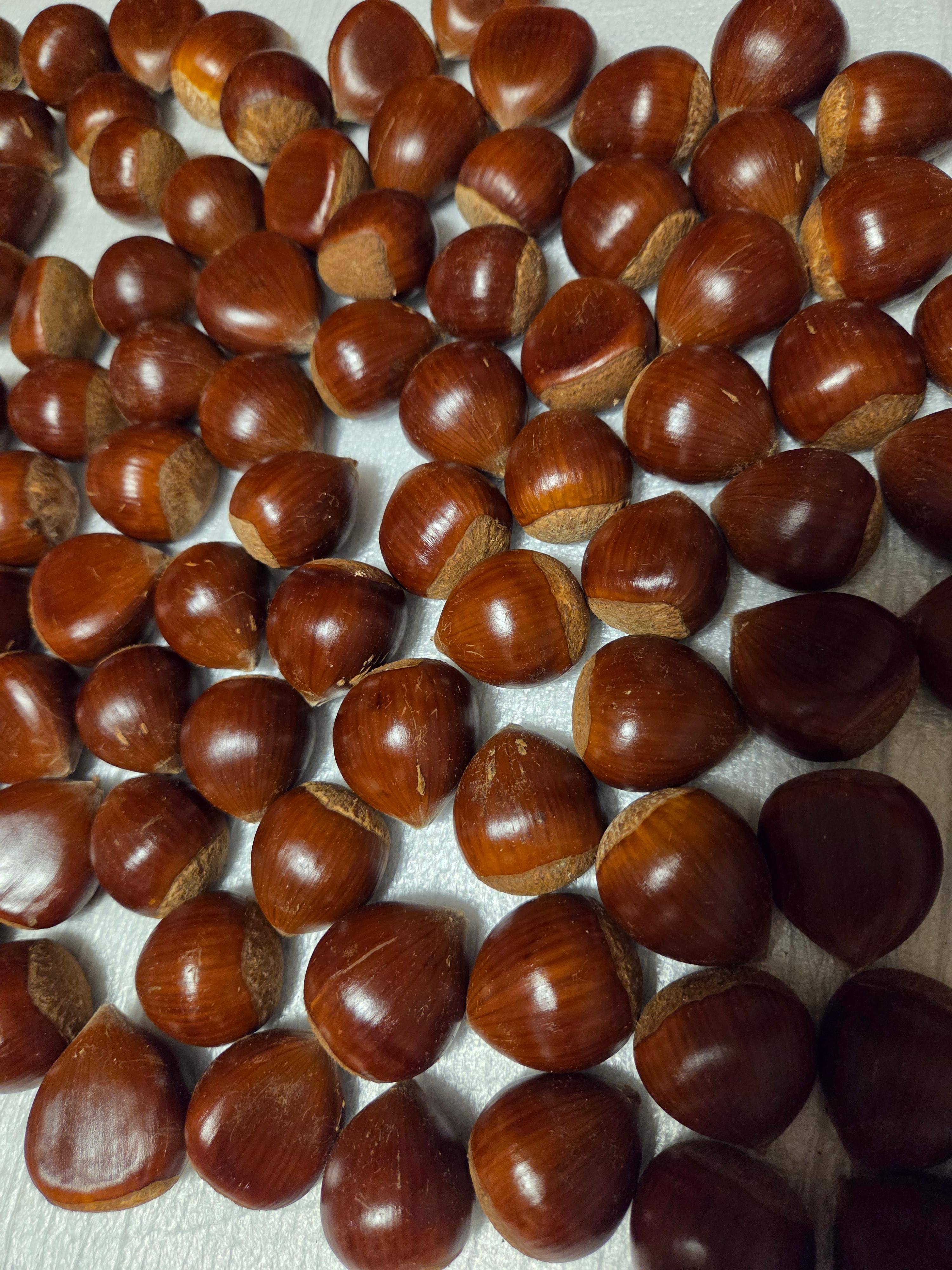 집에 와서 벌레 먹은 밤 고르고 먼지 털어서 늘어놓으니 감탄스럽게도 예쁘네요