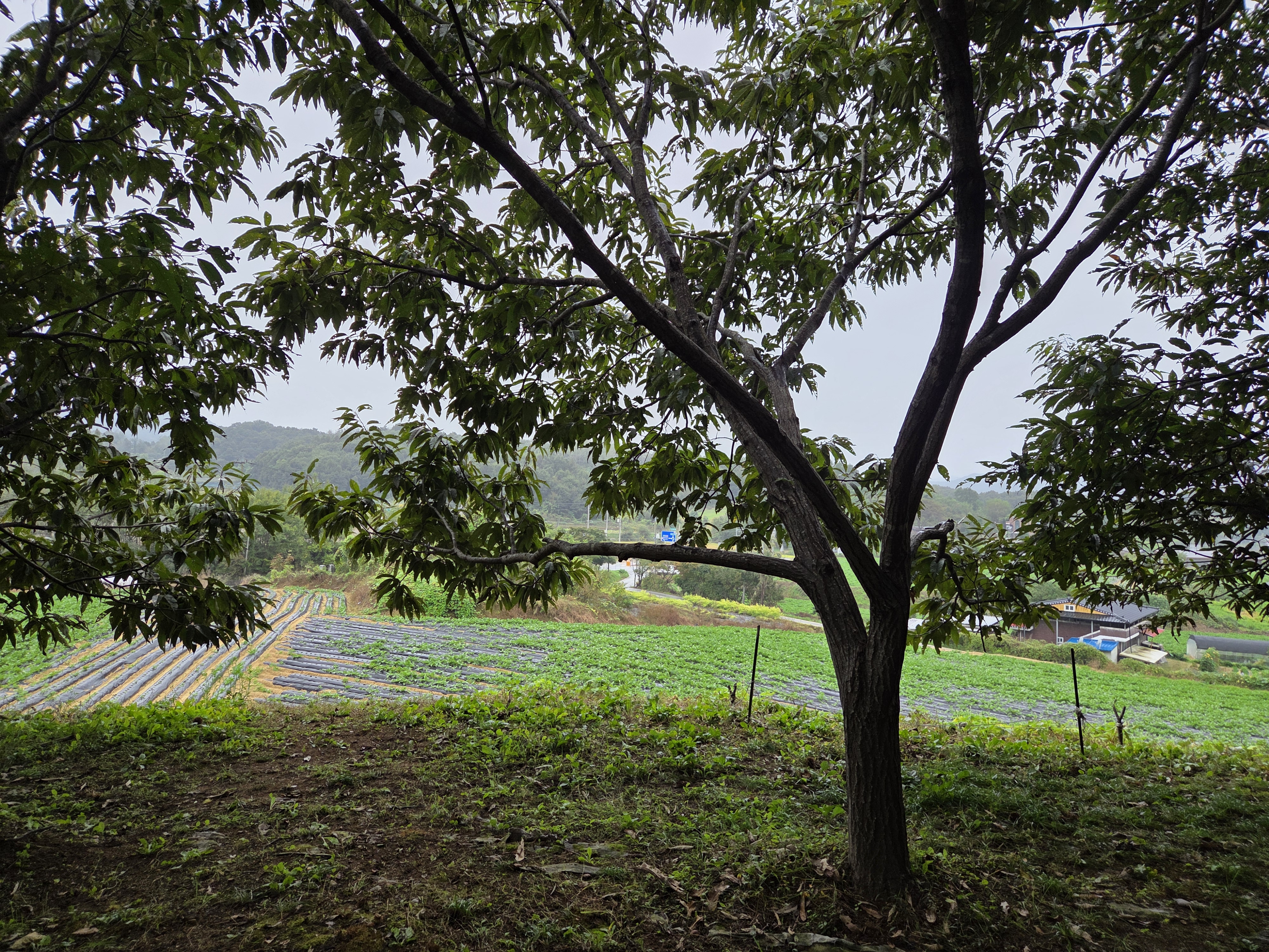 밤나무 사이로 보이는 초록은 무밭인데 저 밭에 무가 굵어지면 겨울을 준비해야 되는 거겠지요