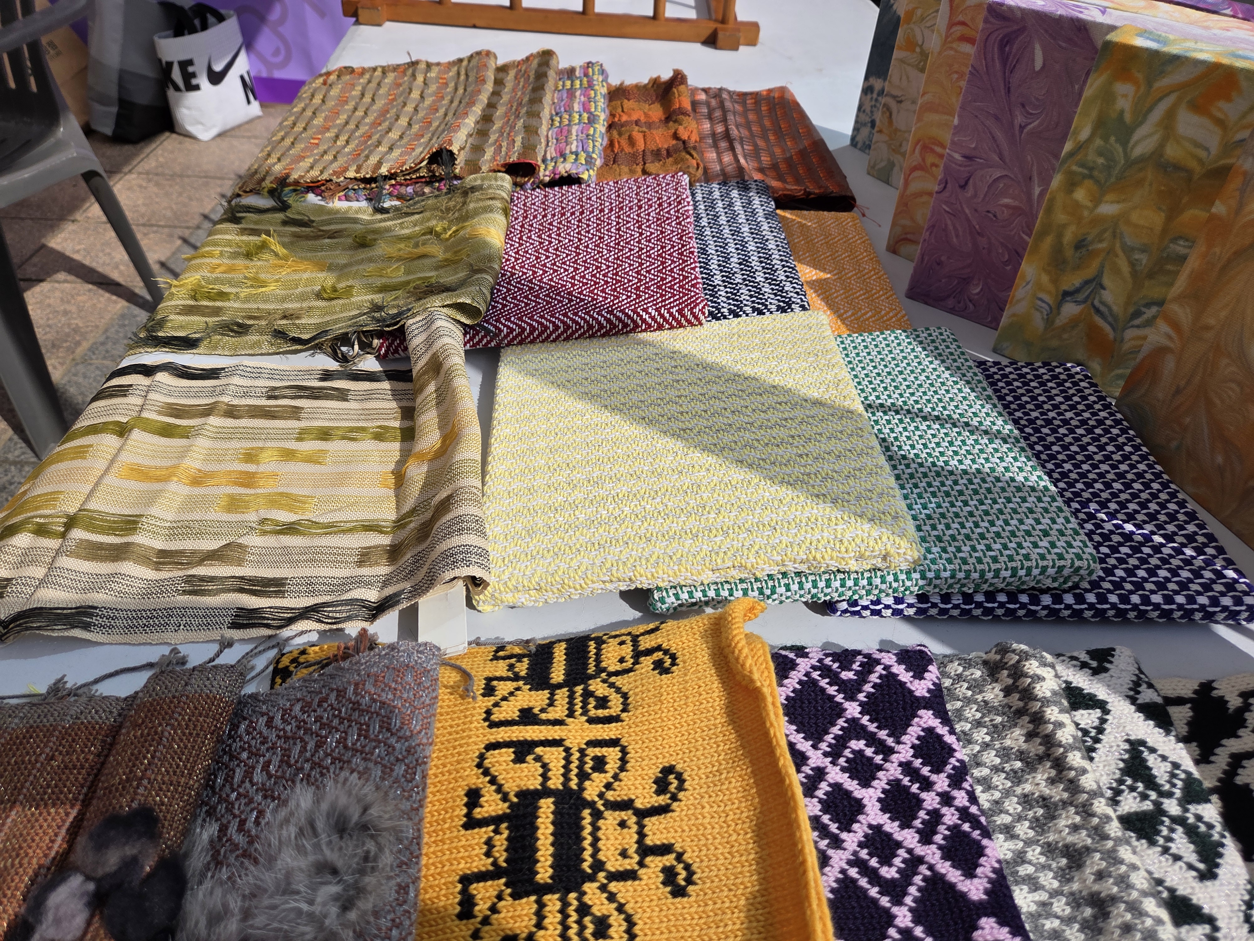 진열해 놓은 스카프는 직접 직물기계로 짠 거라고 하네요