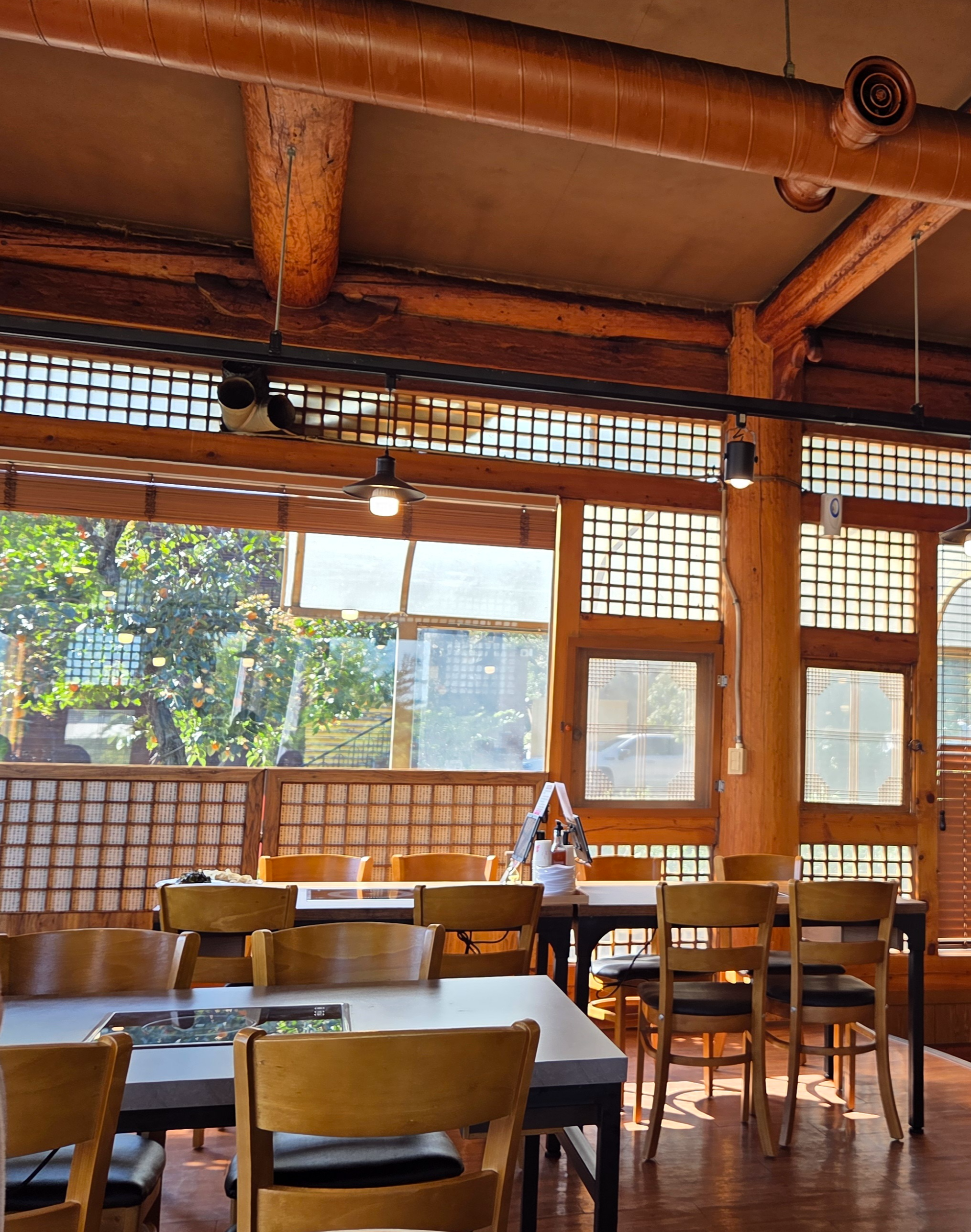 안으로 들어가면 한옥 창호에 밝은 체리색 기둥들이 화사하고 따스한 느낌이 아주 마음에 드네요