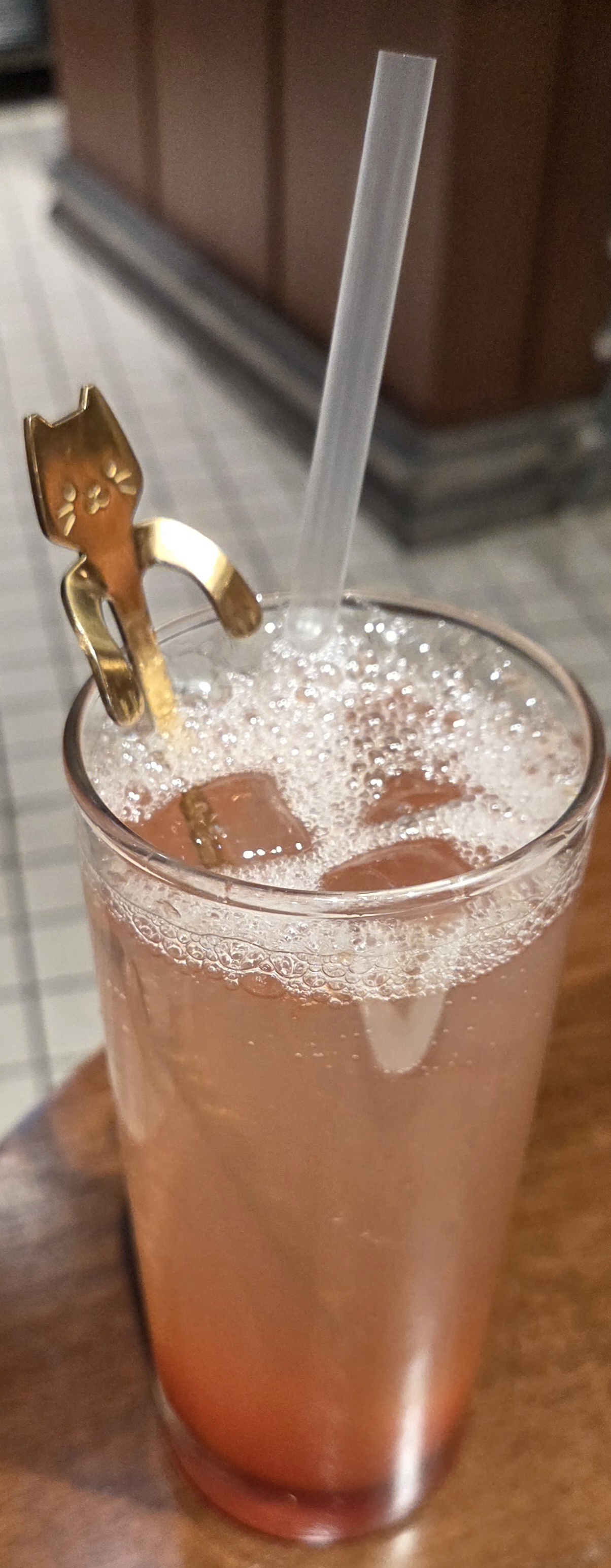 빨대로 저으려고 하는데 함께 꽂혀있는 귀여운 고양이 스푼이 있네요