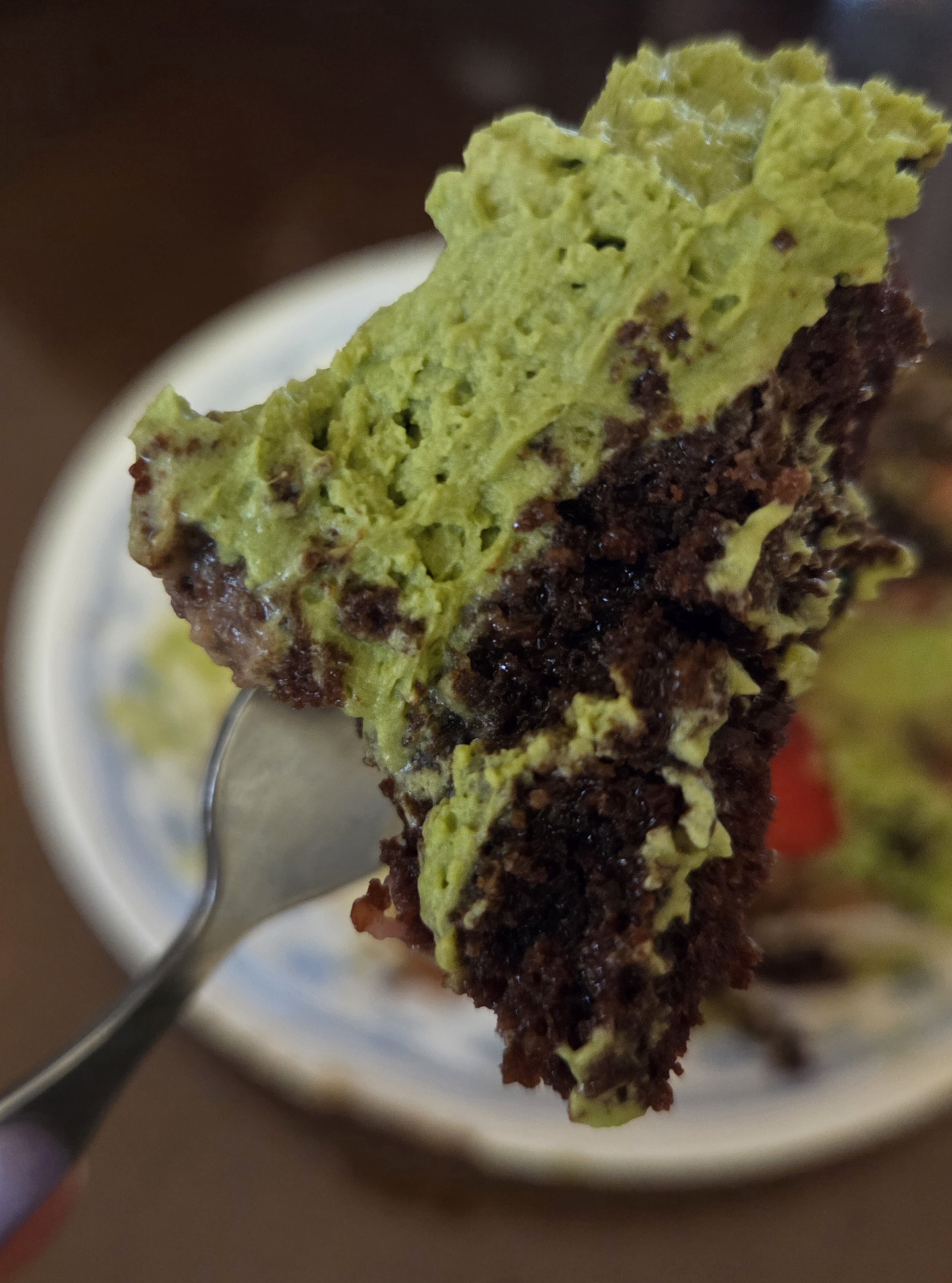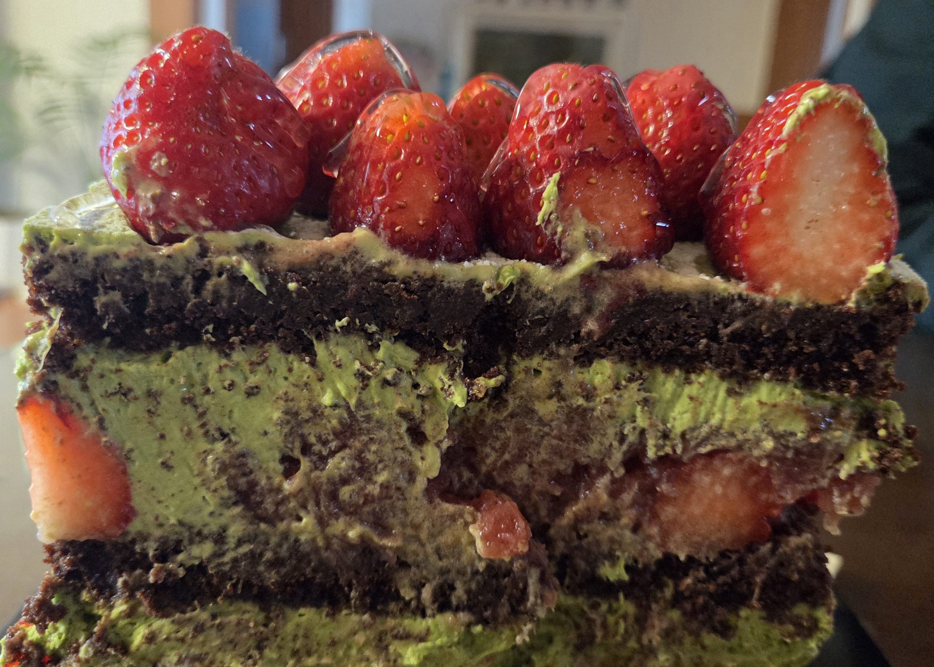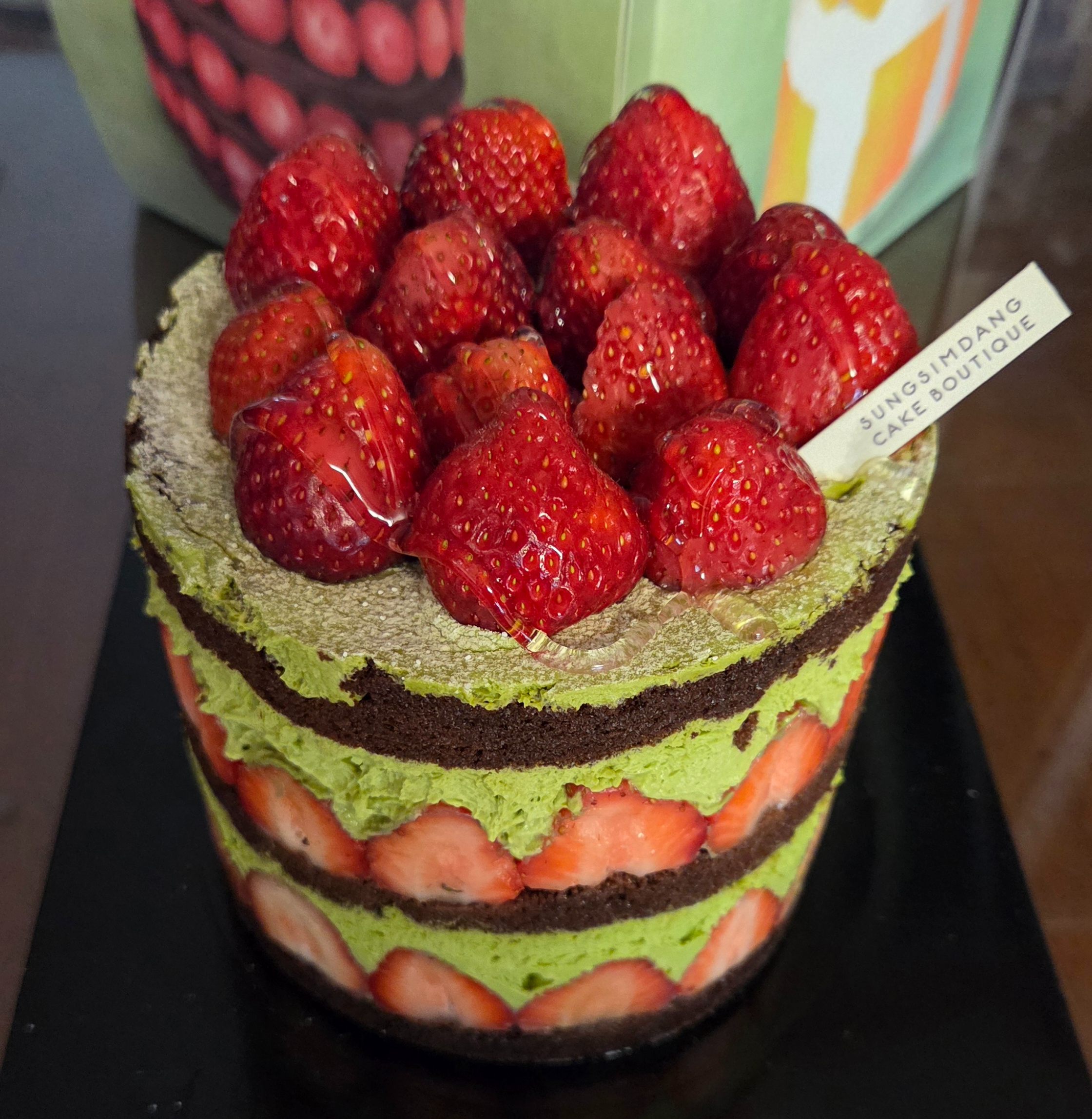 초코빵과 말차 크림이 딸기와 함께 봄날에 잘 어울리는 케이크이네요