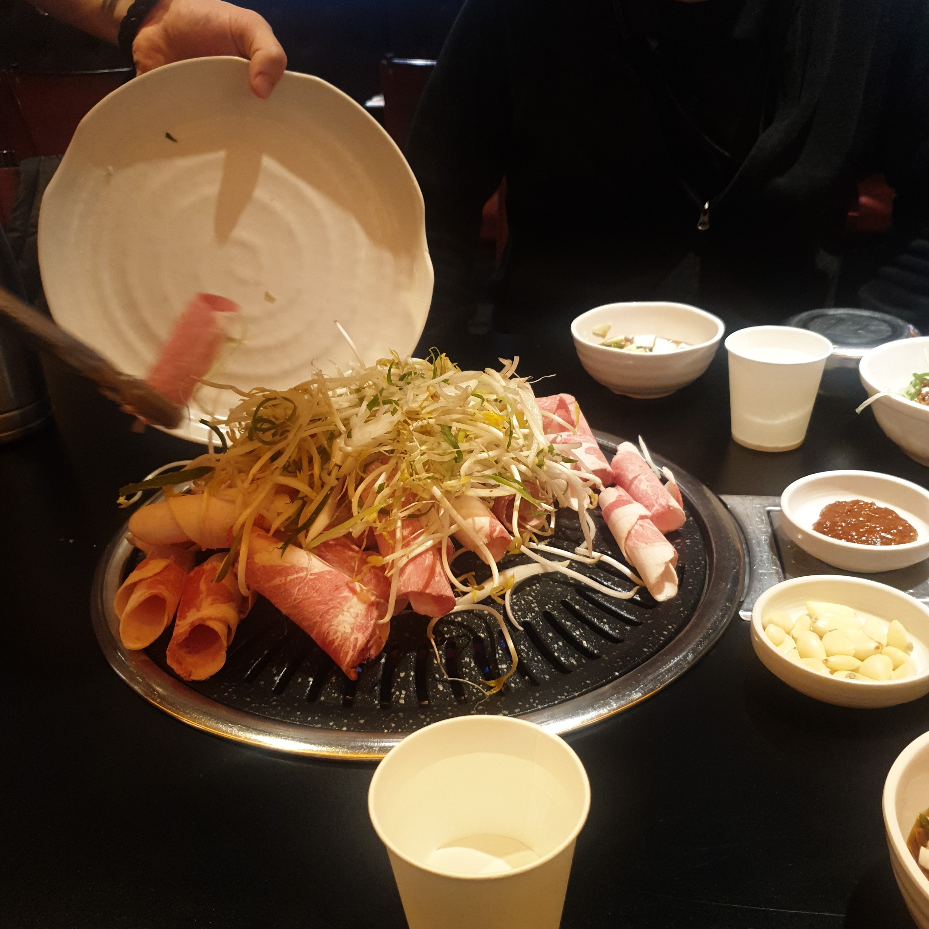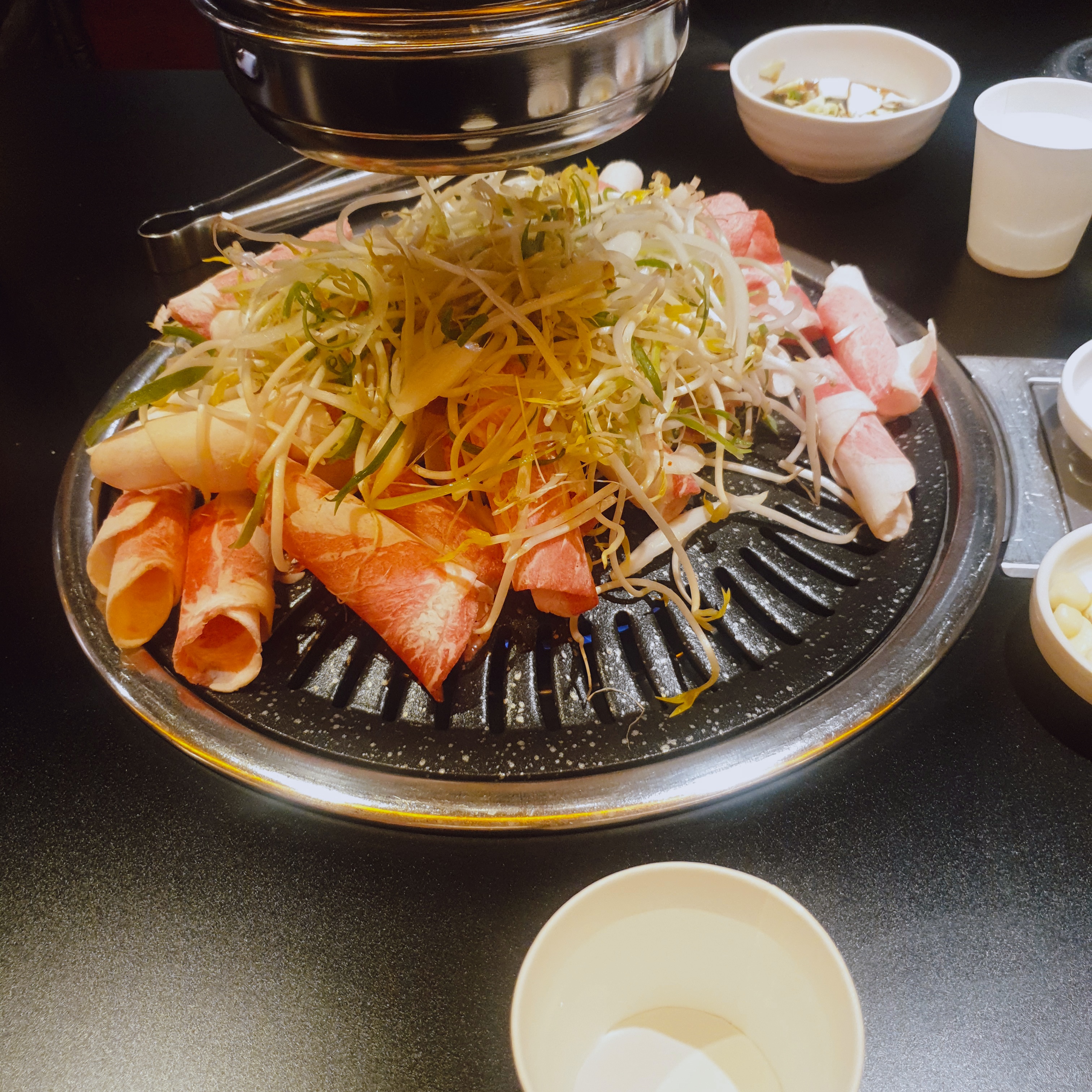 숙돌배기가 나왔습니다. 숙주랑 차돌박이를 한번에 불판에 올려주셨어요.