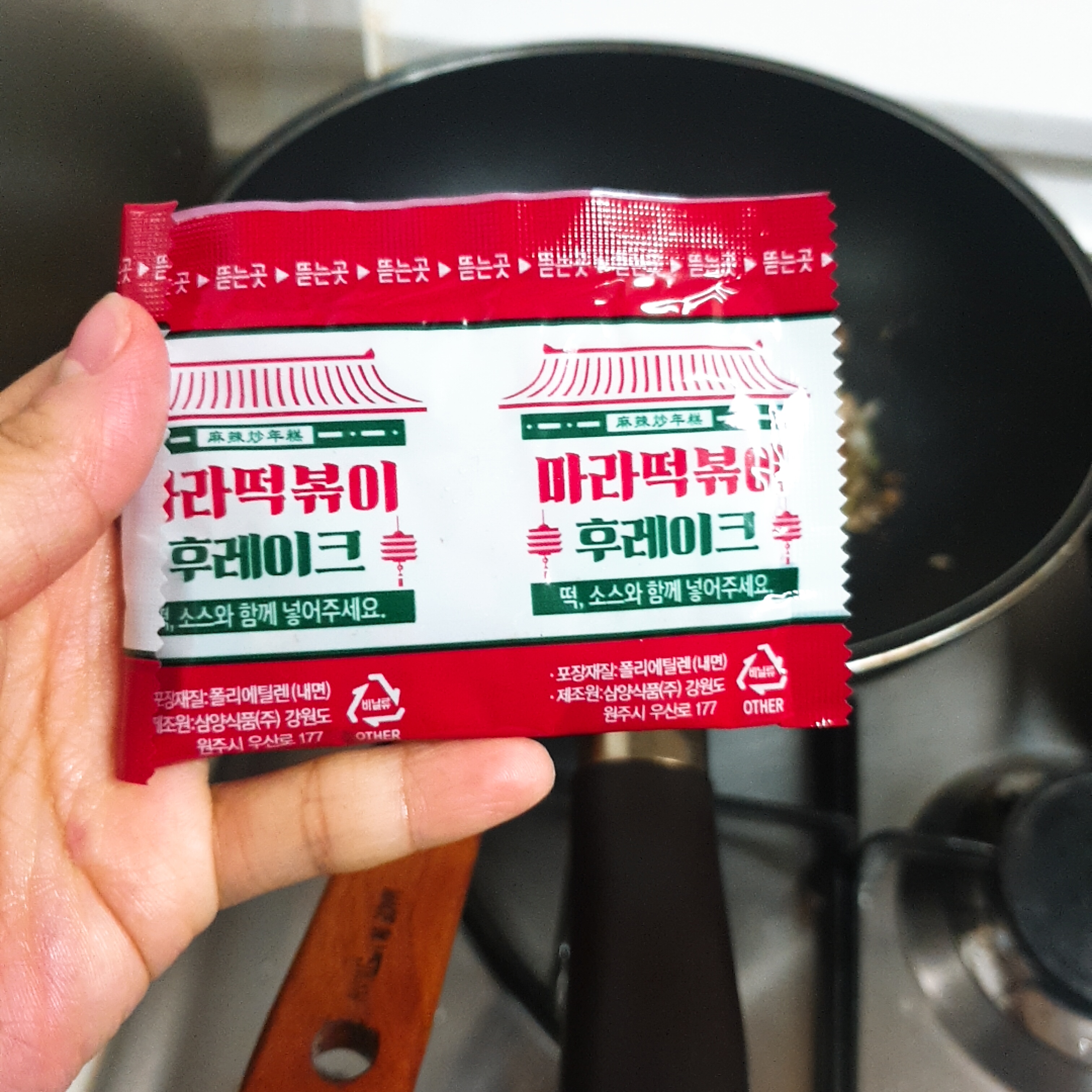 오늘은 CU편의점에서 산 마라떡볶이를 볶음팬에 조리해서 편의점 떡볶이가 아닌 것처럼 만들어 보았어요.