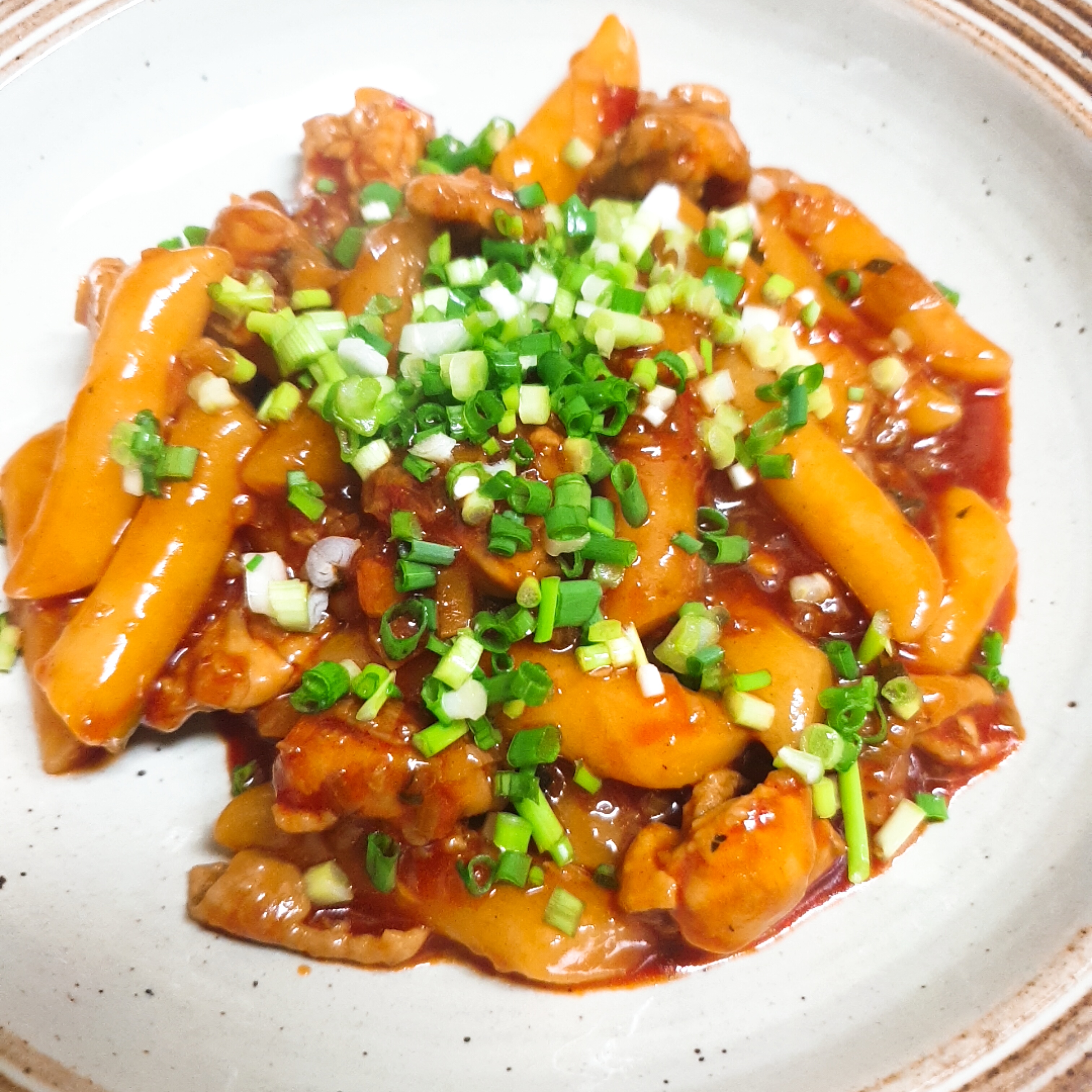 떡 이외에 이것 저것 들어가다 보니까 조리법대로 만들었을때보다는 자극적인 맛이 덜해요. 다음에는 닭고기를 볶을때 간장도 살짝 더 넣고 생강가루도 쪼금 넣어서 먹어보려구요.