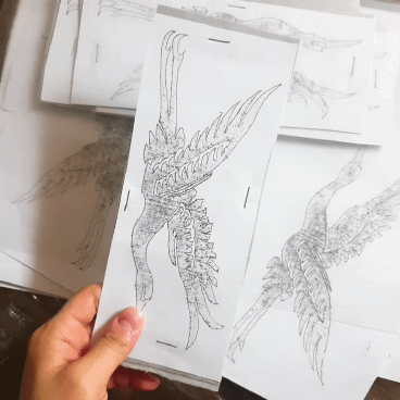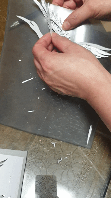 마지막으로 한지에서 학을 살살 떼어내면 돼요. 꼼꼼하게 파면 한번에 잘 뜯어져요.